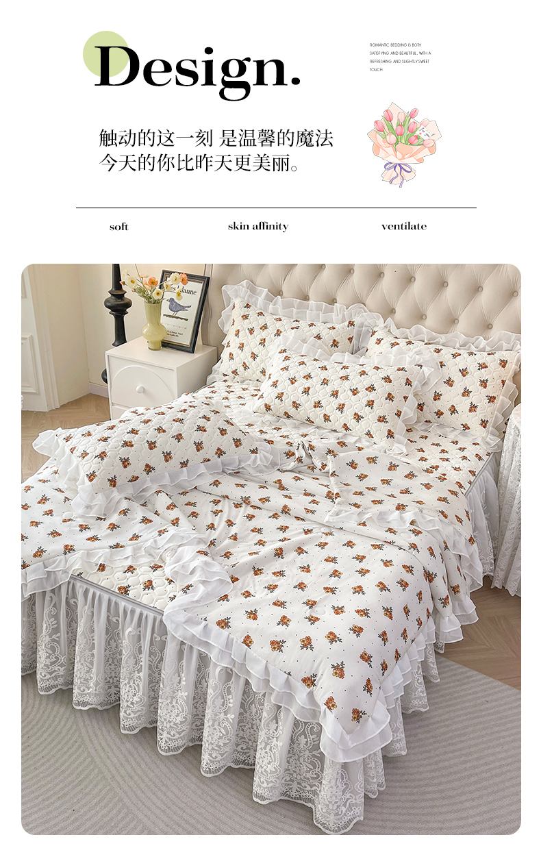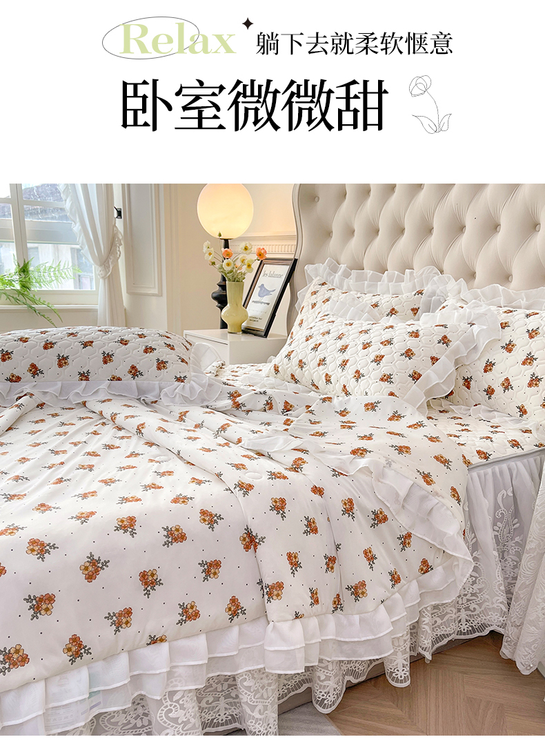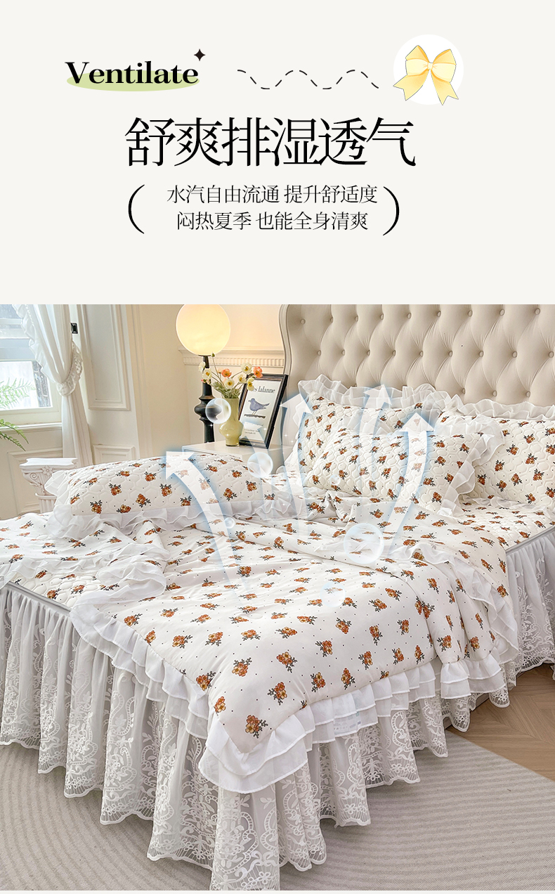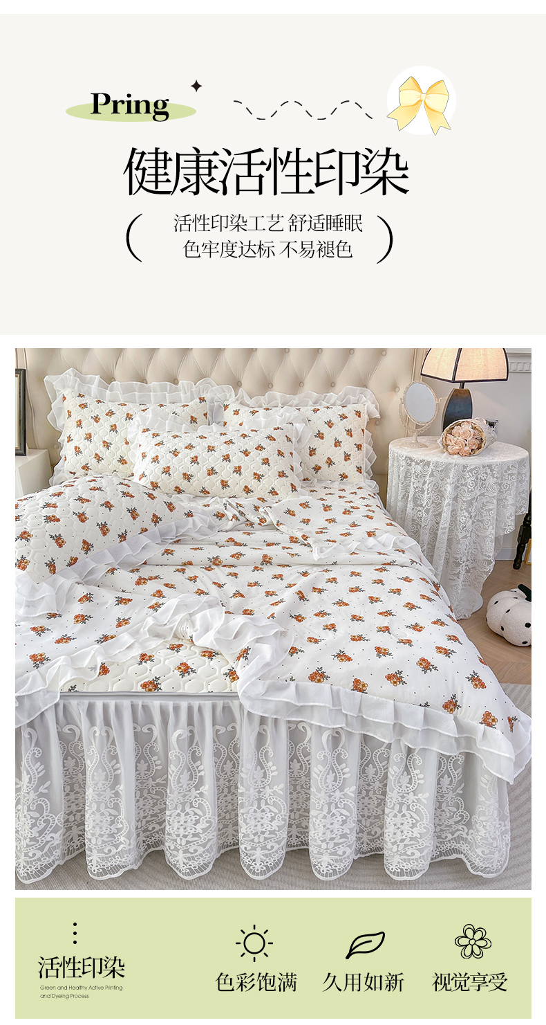 商品名称:虹星家纺 2024新款凉感丝印花可拆床裙套件-夏被凉席四件套 繁花集序