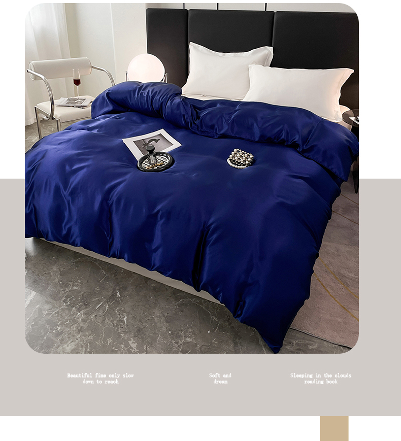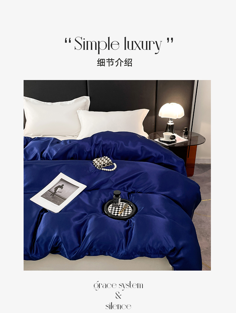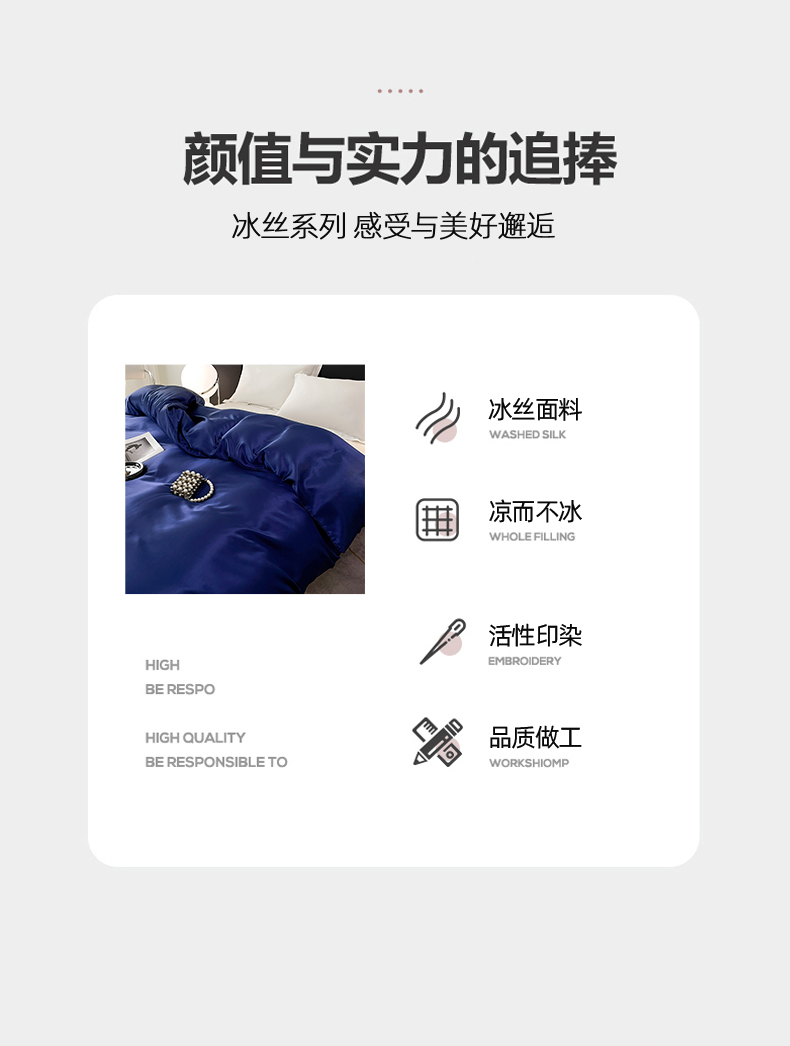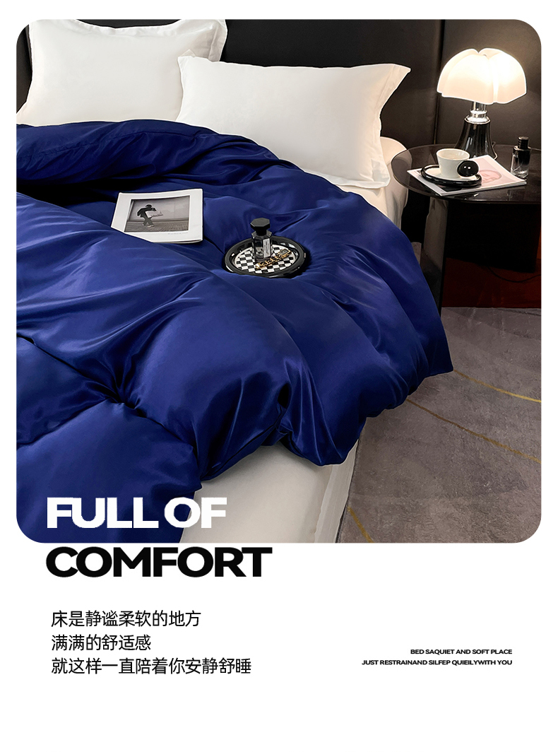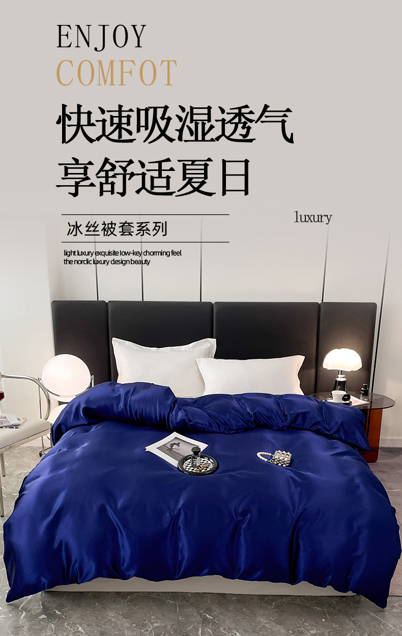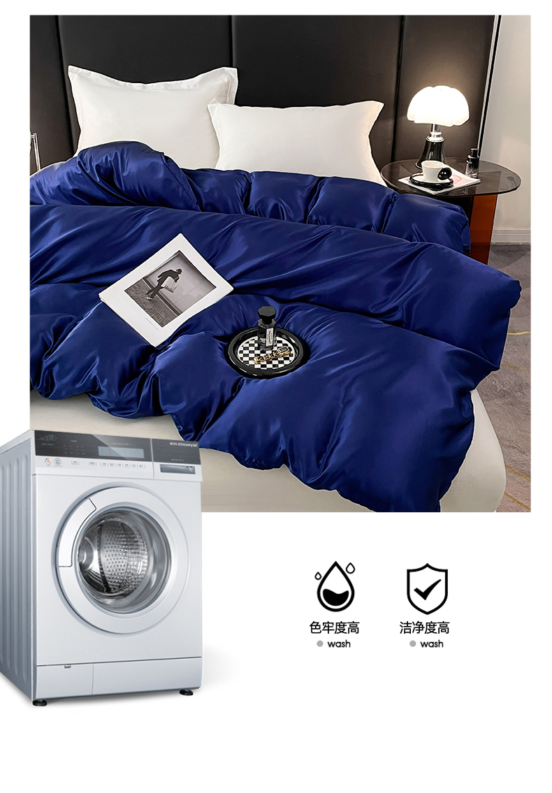 • 91家纺网 家纺一手货源 找家纺 梦舒羽 2025新款可水洗冰丝被套双人床被套带同款床单床笠四件套 深海蓝