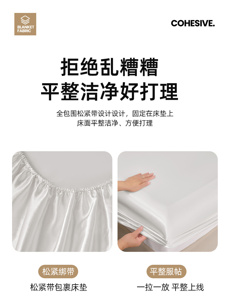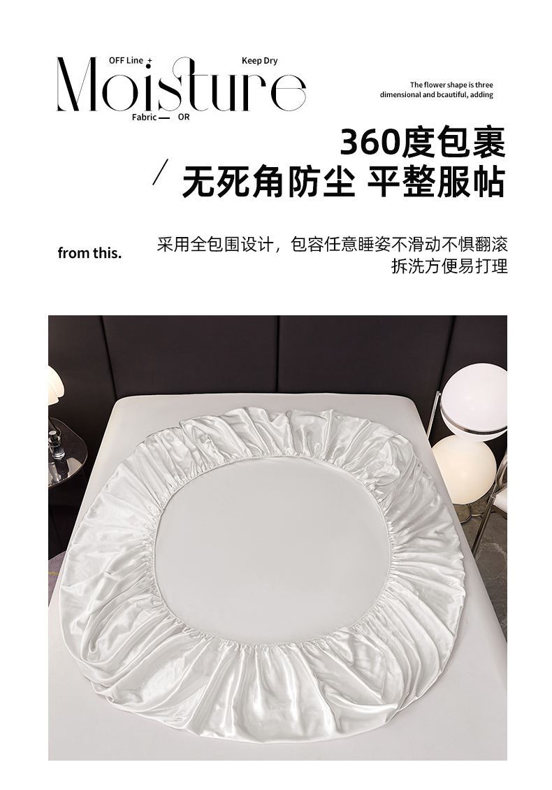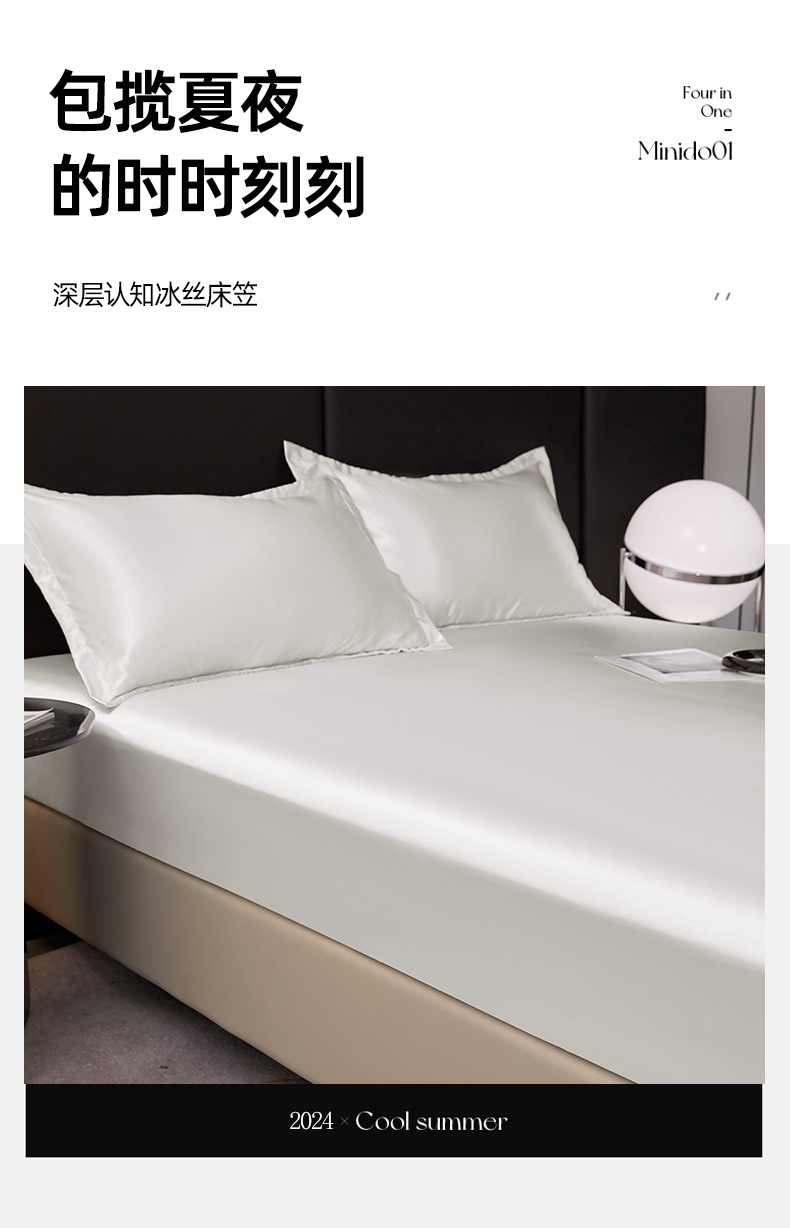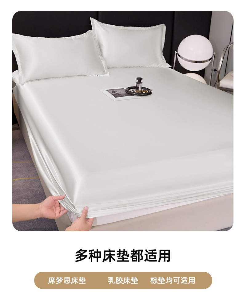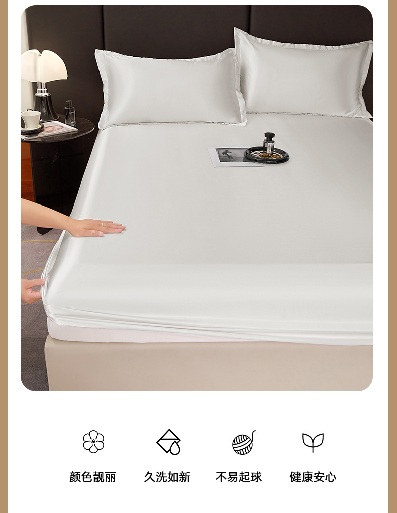 商品名称:梦舒羽 2025新款可水洗冰丝床垫保护套床笠三件套 光洁白