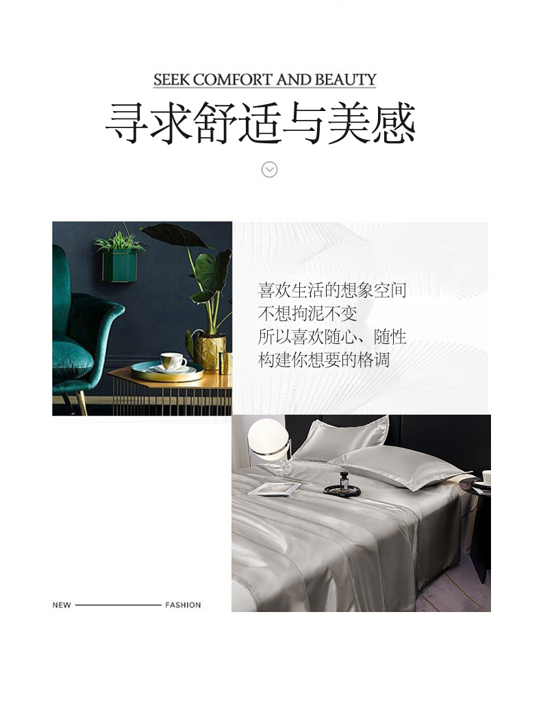 商品名称:梦舒羽 2025新款可水洗冰丝床垫保护罩防尘床单三件套 典雅灰