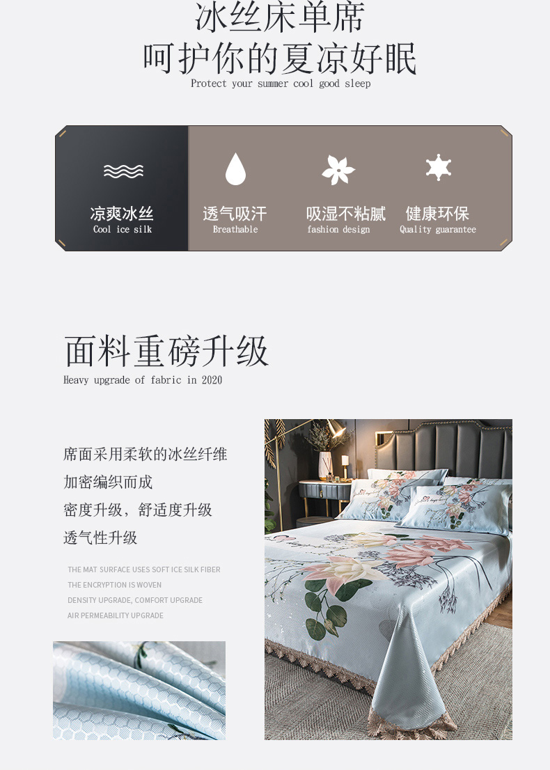 商品名称:大境 2024新款900d窝蜂冰丝凉席三件套 香草百合