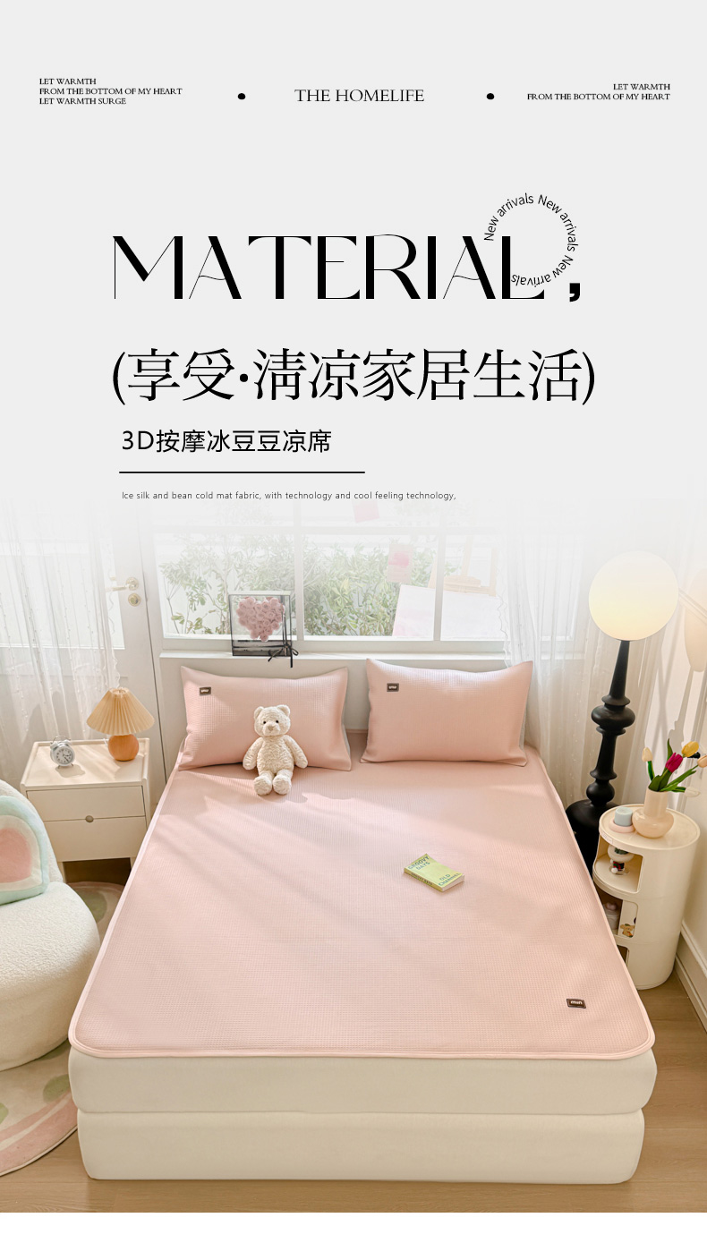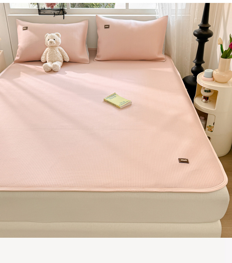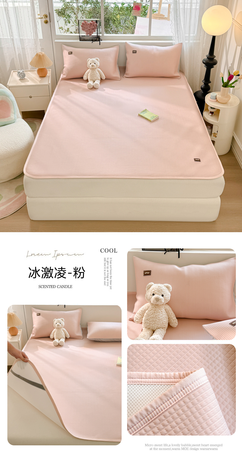 慕澄家纺 2024新款高克重冰豆豆复合纯色贴标凉席 冰激凌-粉