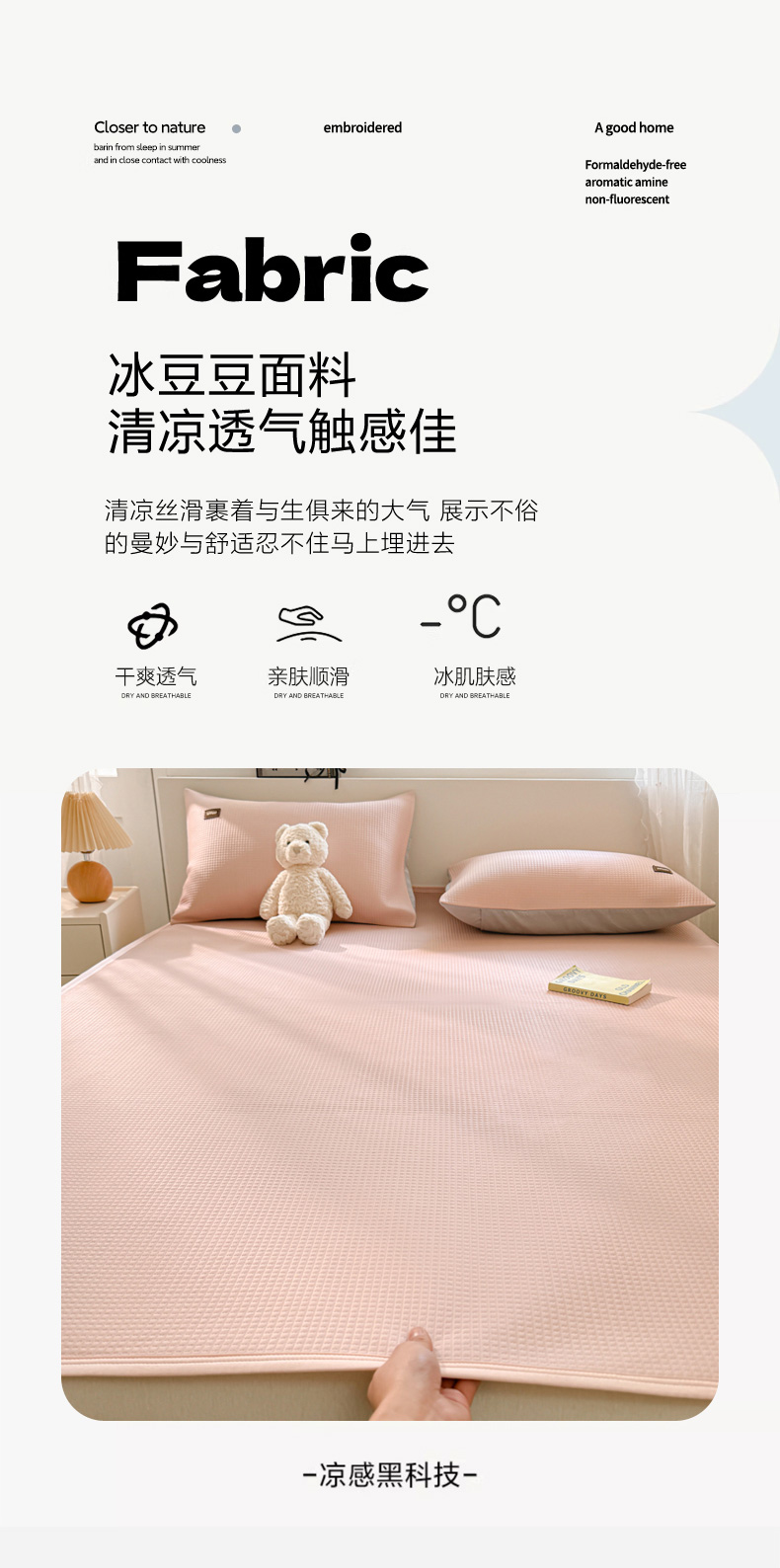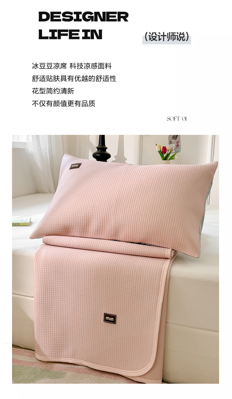 商品名称:慕澄家纺 2024新款高克重冰豆豆复合纯色贴标凉席 冰激凌-粉