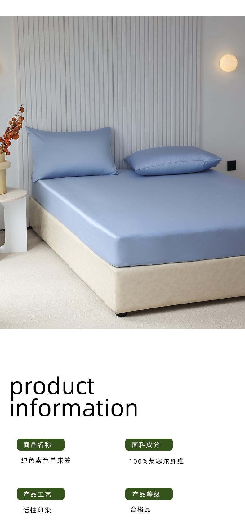 商品名称:Mr.pig猪先生水洗棉 2024新款60天丝莱赛尔纤维四件套系列-单床笠 伊连青