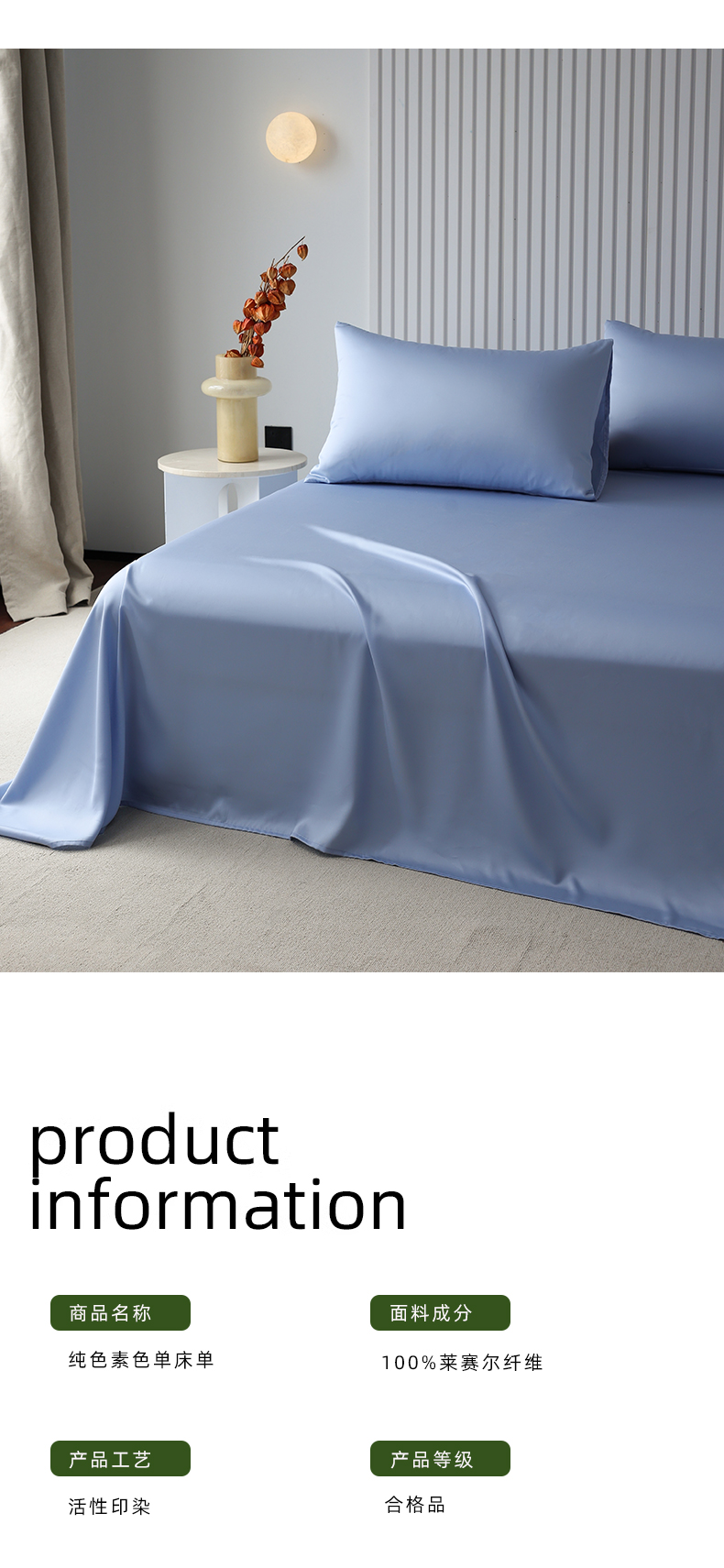 Mr.pig猪先生水洗棉 2024新款60天丝莱赛尔纤维四件套系列-单床单 伊连青