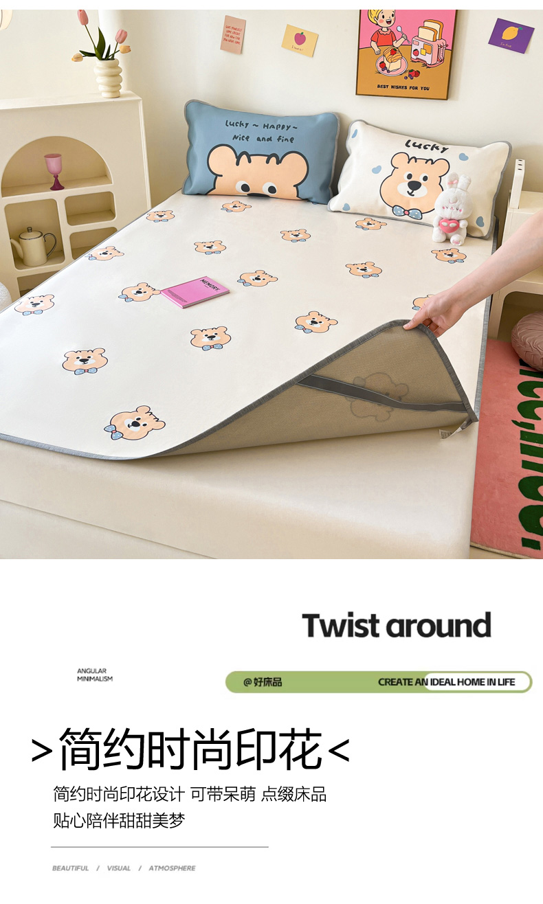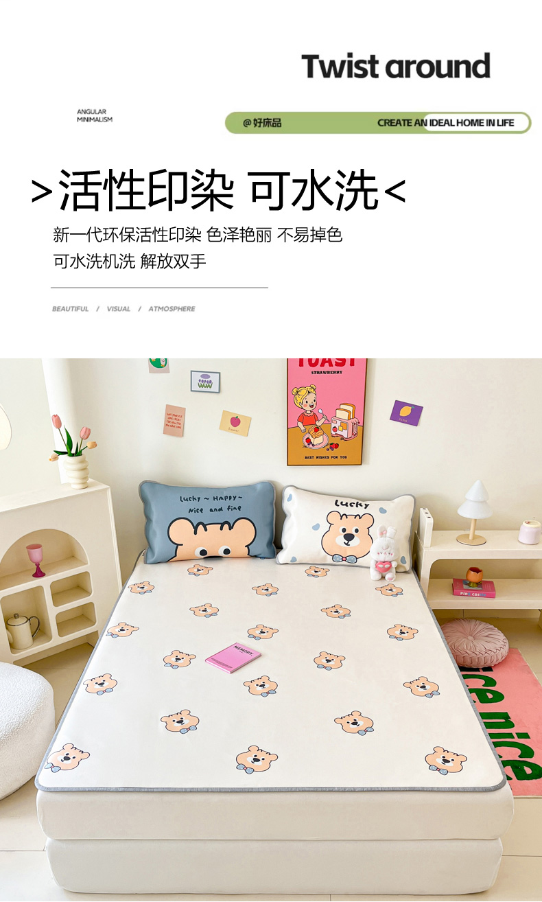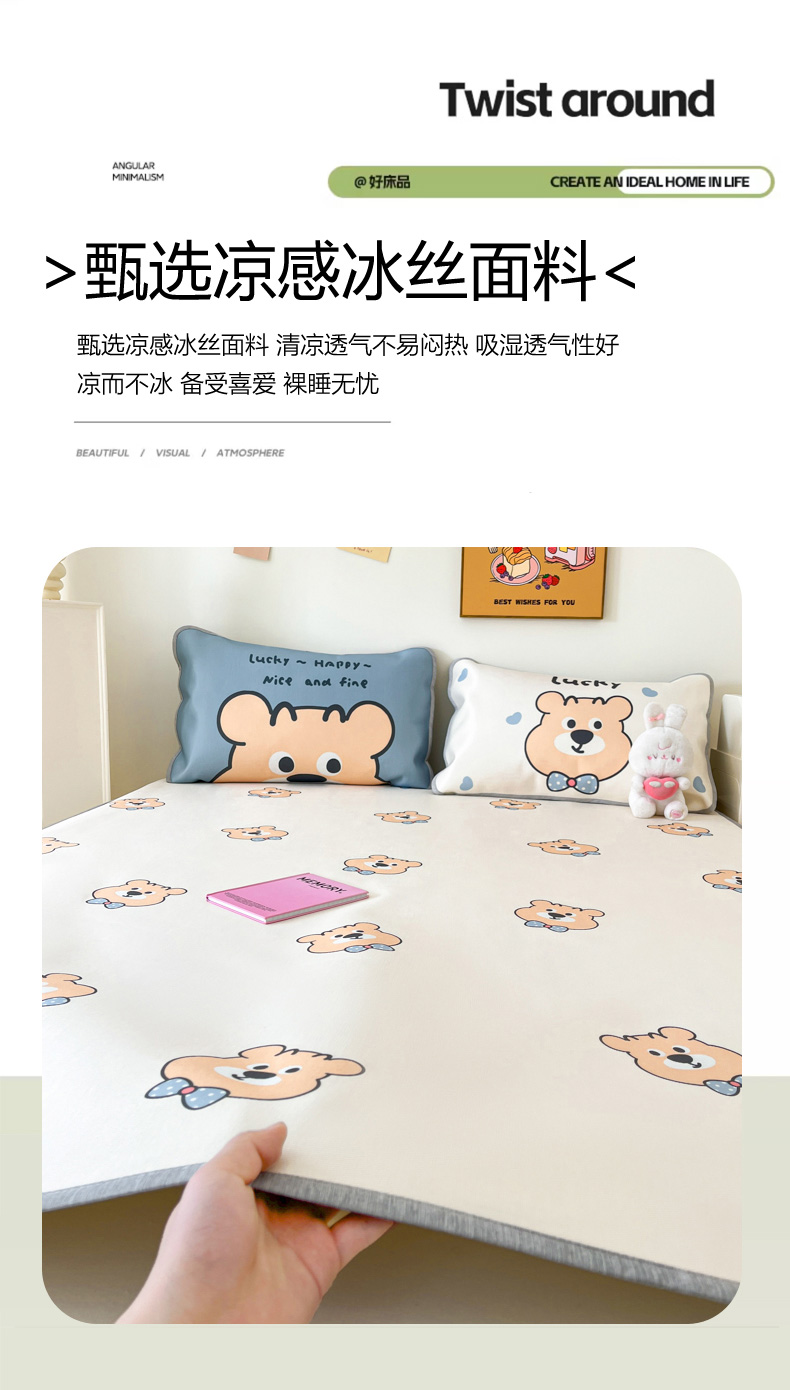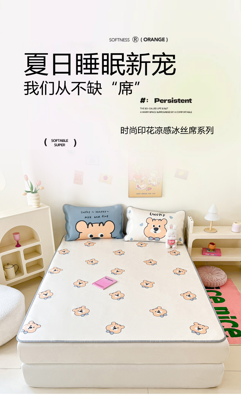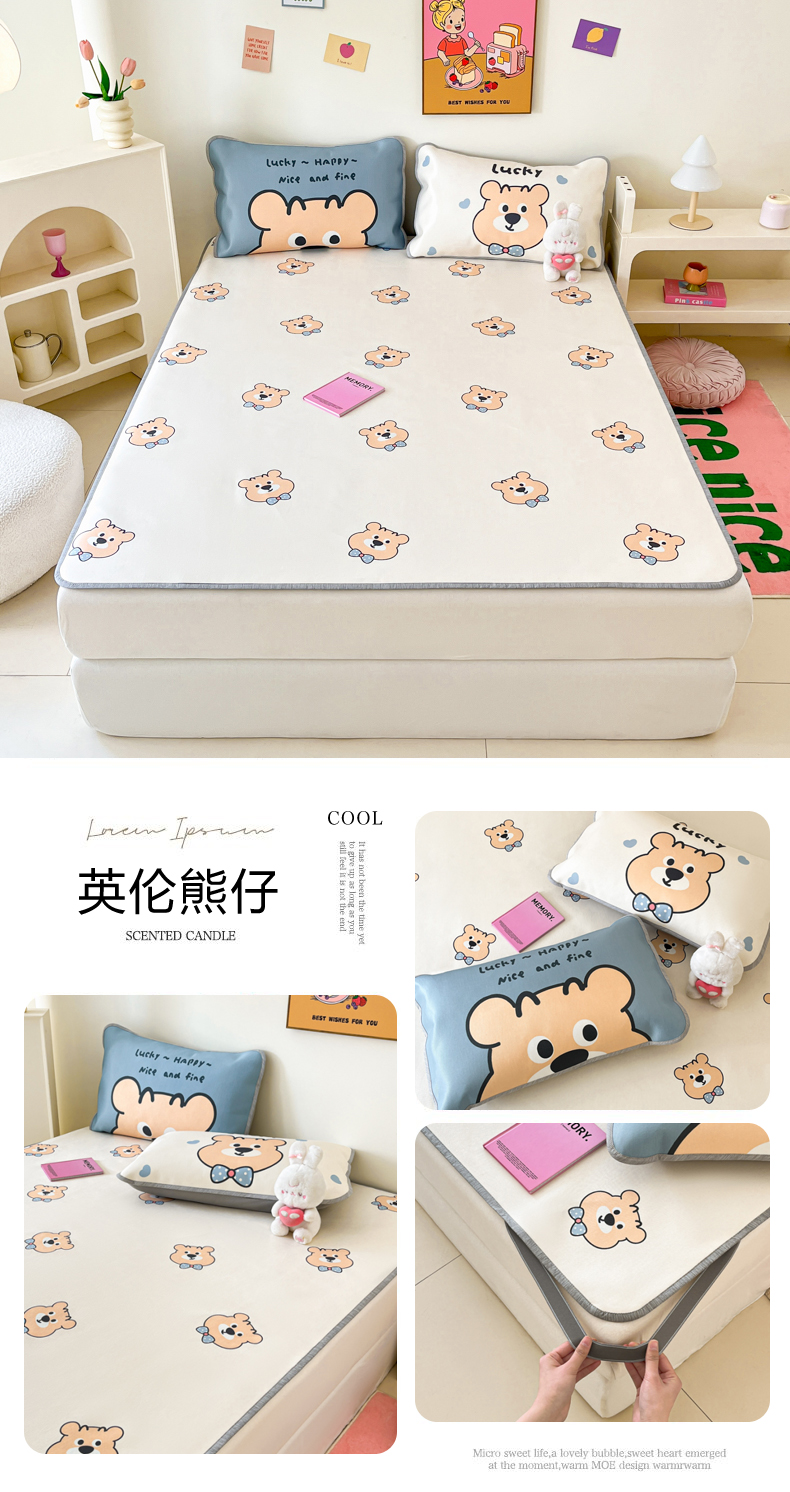 寐居家纺 2024新款A类时尚印花凉感冰丝凉席 英伦熊仔