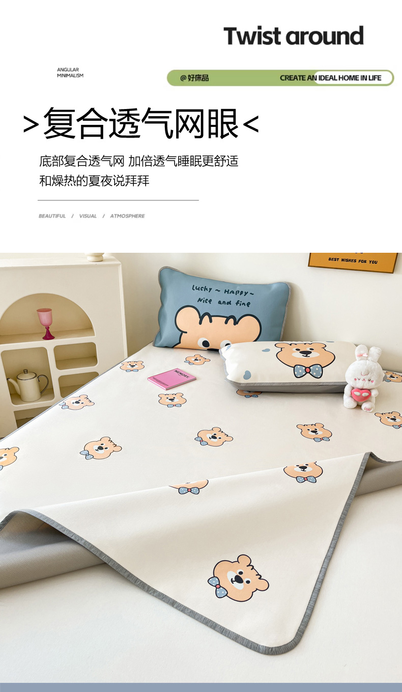 商品名称:寐居家纺 2024新款A类时尚印花凉感冰丝凉席 英伦熊仔