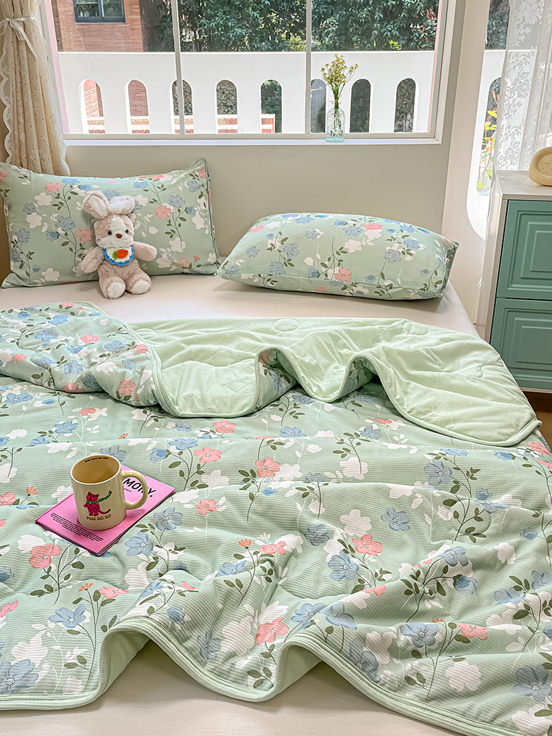 (总)美梦里 2025春夏新款A类云母凉感夏被夏凉被空调被--幸运多,幸运多-粉色,幸运多-茶灰色,幸运多-蓝色,幸运多-绿色,幸运多-天蓝