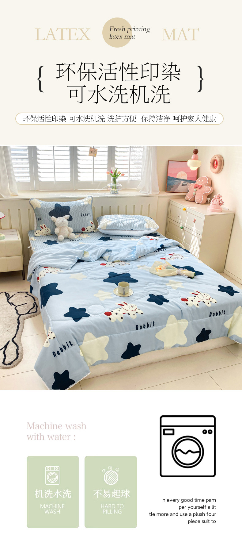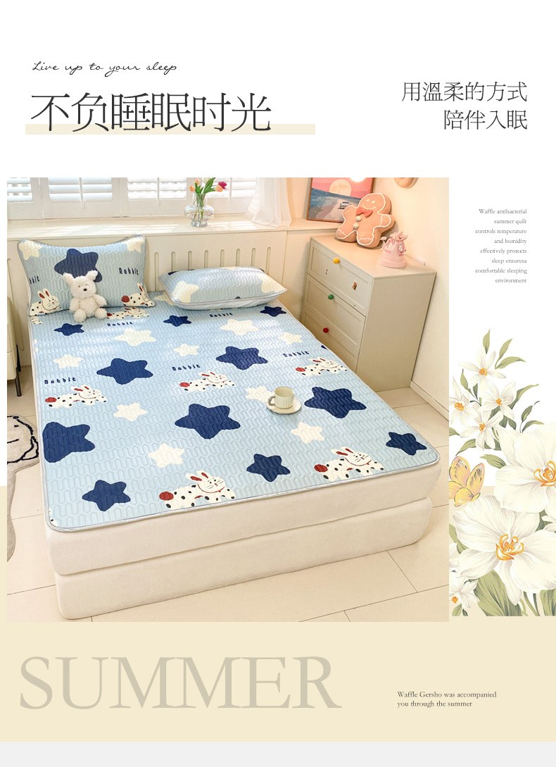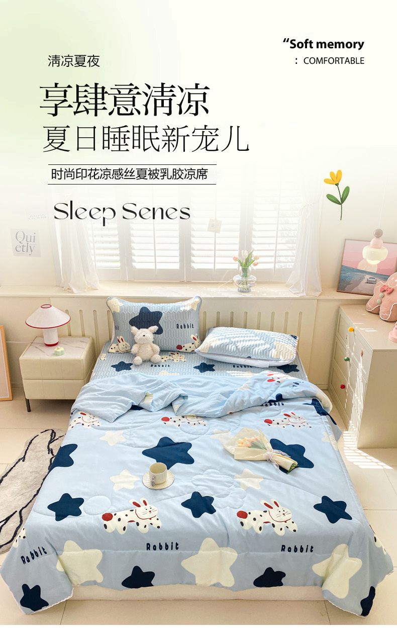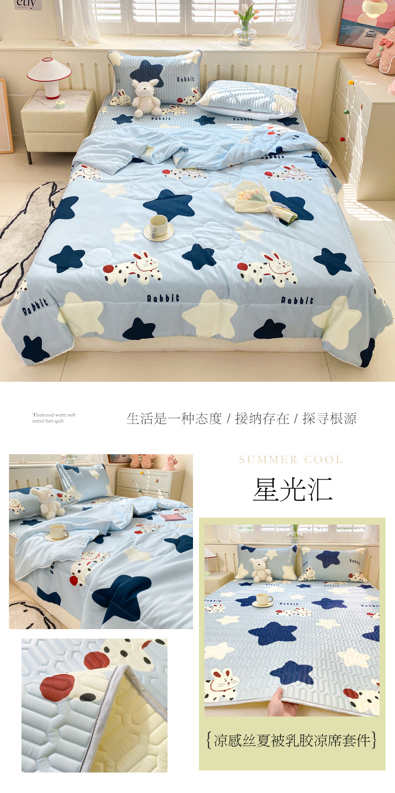 当前位置: 91家纺网 > 商品网购 > 床品套件 > 四件套 > 夏被四件套 > 寐居家纺 2024新款时尚印花凉感丝乳胶凉席小花边夏被四件套系列 星光汇