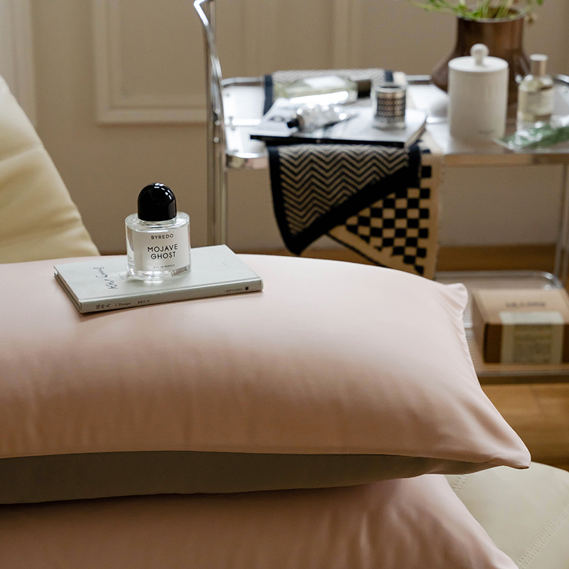 沐晴家纺 2024新款60兰精天丝纯色双拼单枕套 月光色-岩石灰