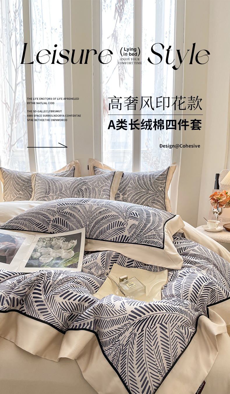 (总)乔利卡沃 2025秋冬季A类加厚全棉磨毛四件套纯棉保暖美式轻奢长绒棉数码印花高端床上用品,花弄影-黄,花弄影-蓝,花弄影-米,花弄影-紫