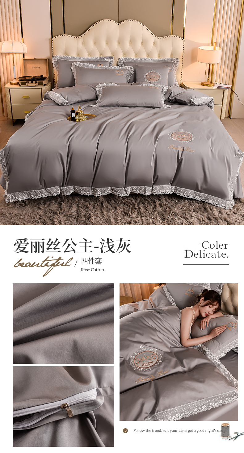 (总)瑞驰家纺 2024新款长绒棉爱丽丝公主四件套系列 精美法式轻奢风四件套系列
