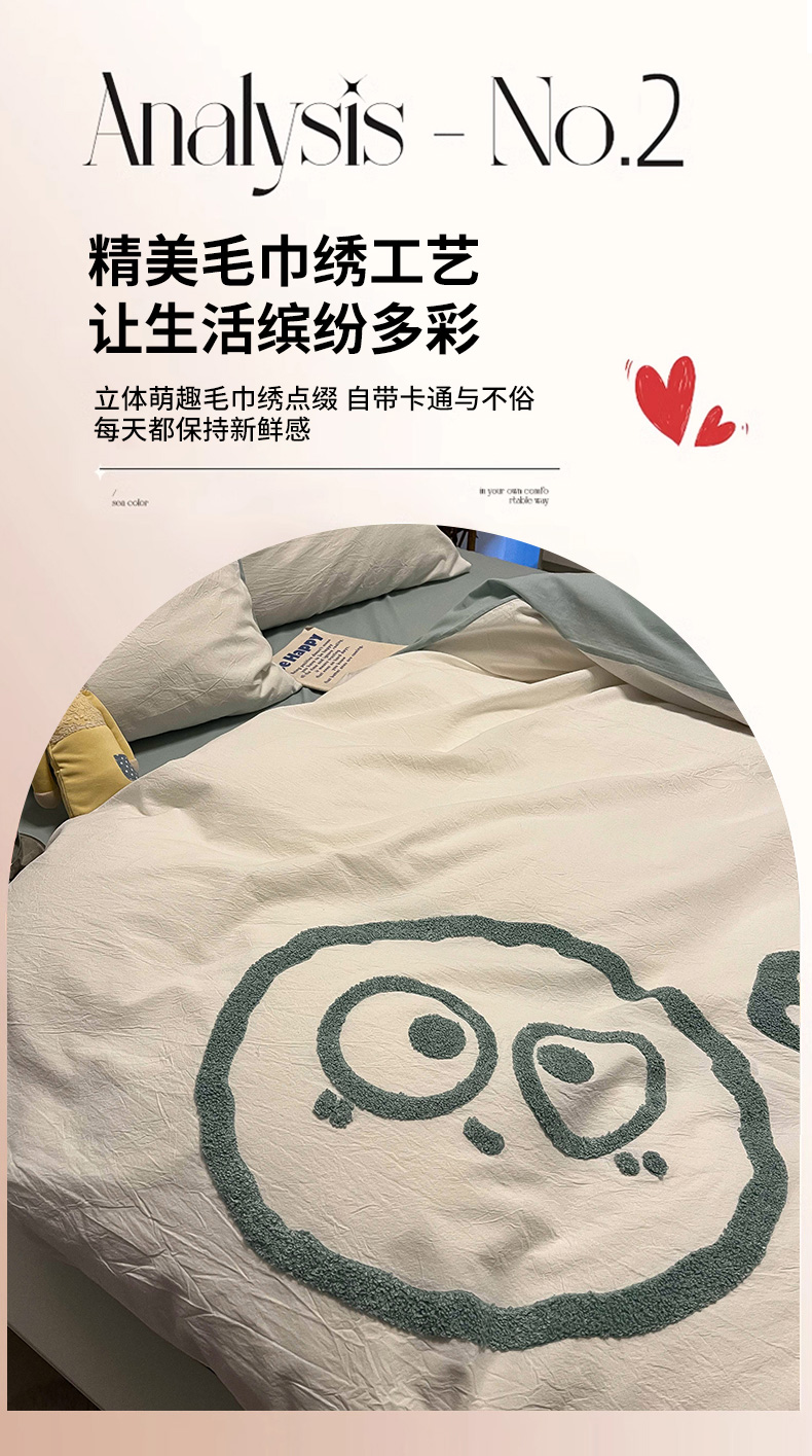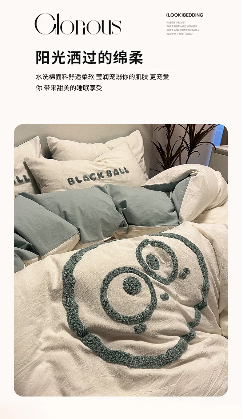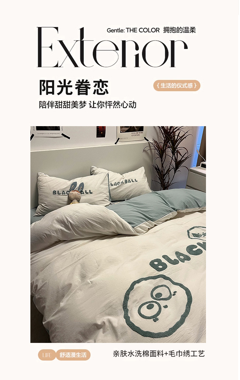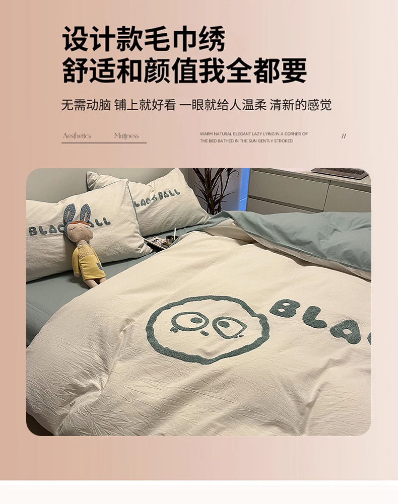 当前位置: 91家纺网 > 商品网购 > 床品套件 > 四件套 > 水洗棉四件套 > 眠帛家居 2024新款水洗棉毛巾绣四件套-煤球系列 繁星蓝