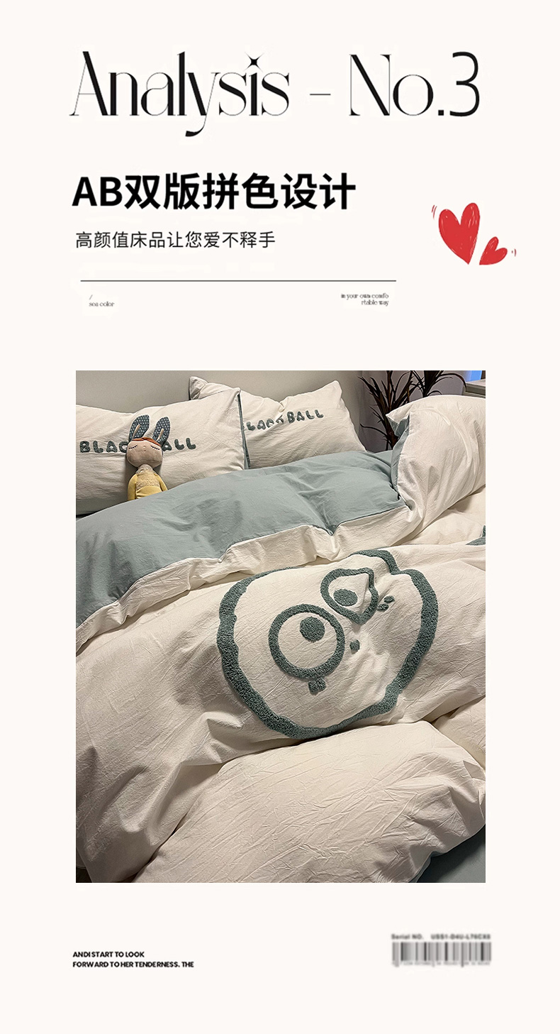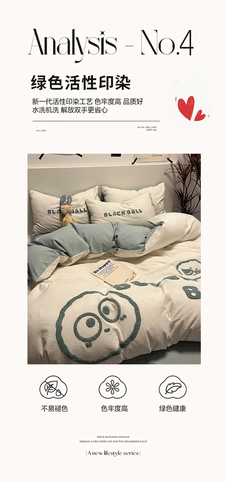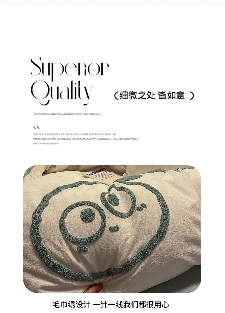 当前位置: 91家纺网 > 商品网购 > 床品套件 > 四件套 > 水洗棉四件套 > 眠帛家居 2024新款水洗棉毛巾绣四件套-煤球系列 繁星蓝