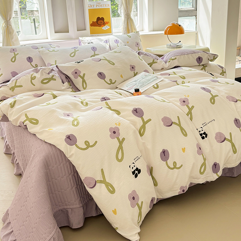 满座家居 2025新款亲肤舒适小清新泡泡棉提花床盖四件套 秋水伊人