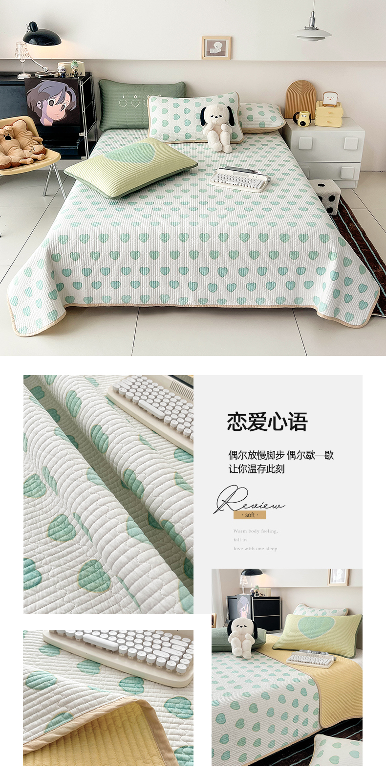 当前位置: 91家纺网 > 商品网购 > 床上用品 > 床盖 > 茉夕家纺 2024新款数码双面纯棉水洗床盖 恋爱心语