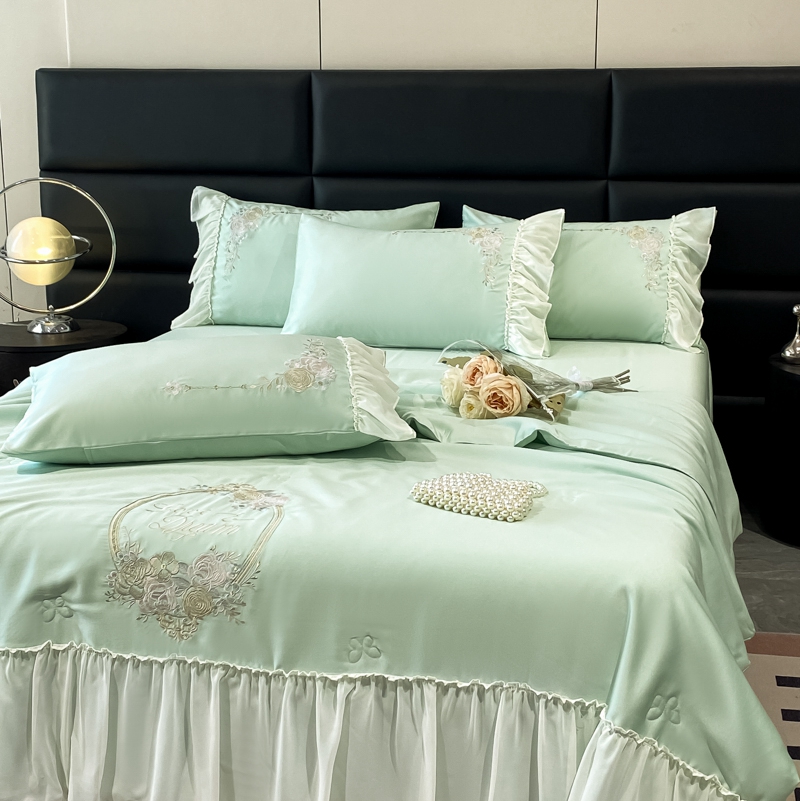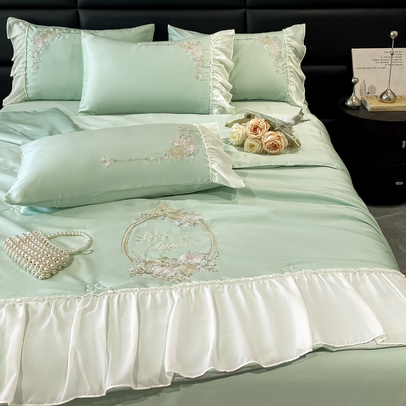 伊人居 2024新款蕾丝款夏被四件套-梦娜系列 梦娜-薄荷绿