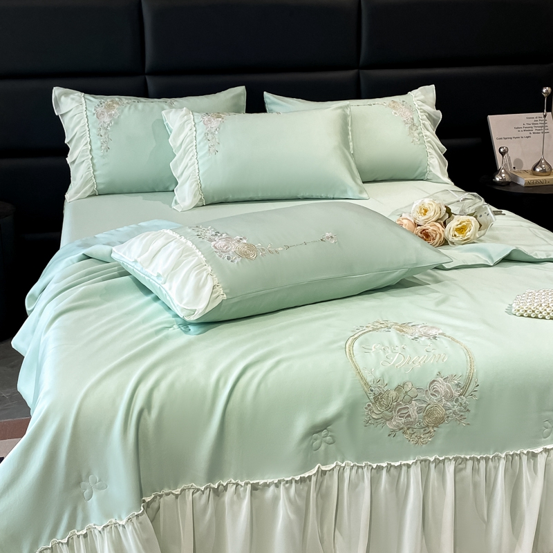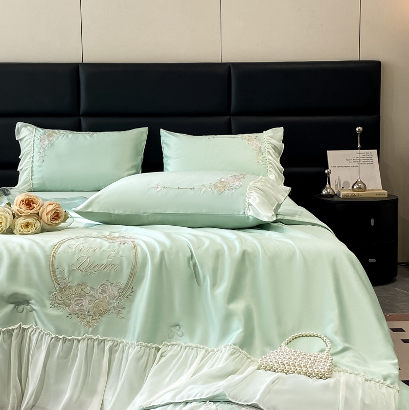 (总)伊人居 2024新款蕾丝款夏被四件套-梦娜系列,梦娜-抹茶金,梦娜-湖水兰,梦娜-珍珠粉,梦娜-薄荷绿,梦娜-香玉紫
