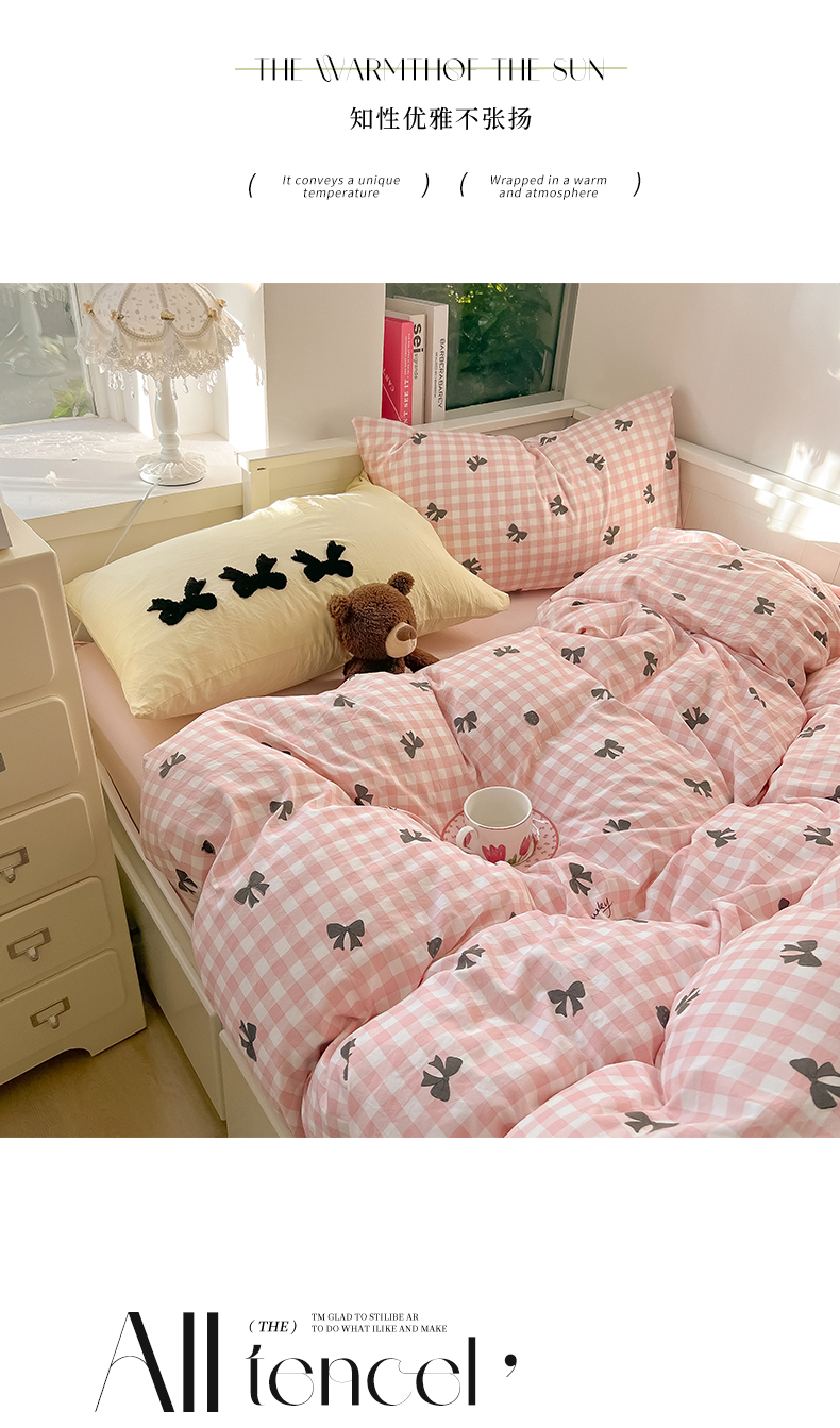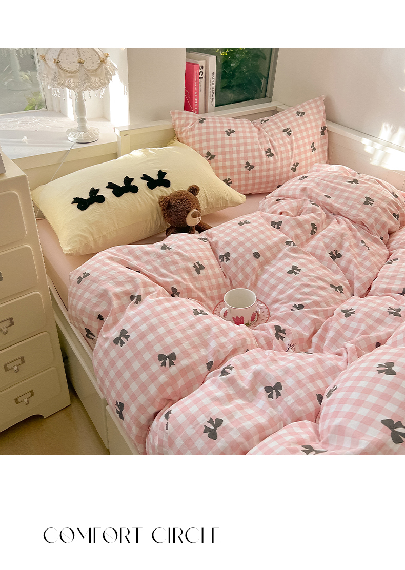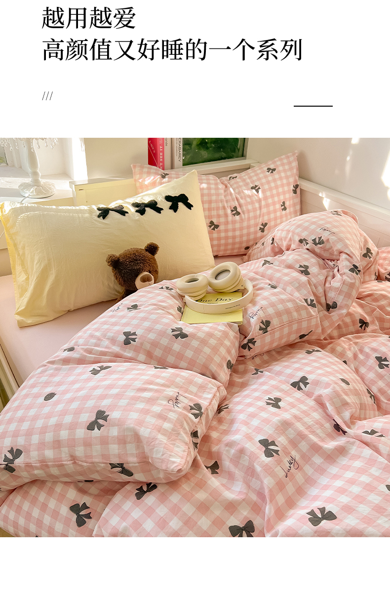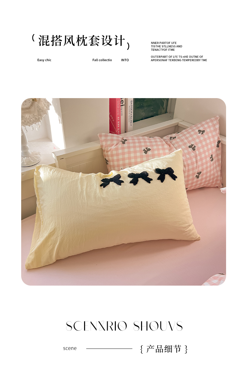 当前位置: 91家纺网 > 商品网购 > 床品套件 > 四件套 > 全棉普通四件套 > 韩都家居 2024新款ins风超柔水洗云朵棉混搭蝴蝶结四件套 混搭蝴蝶结-玉黑