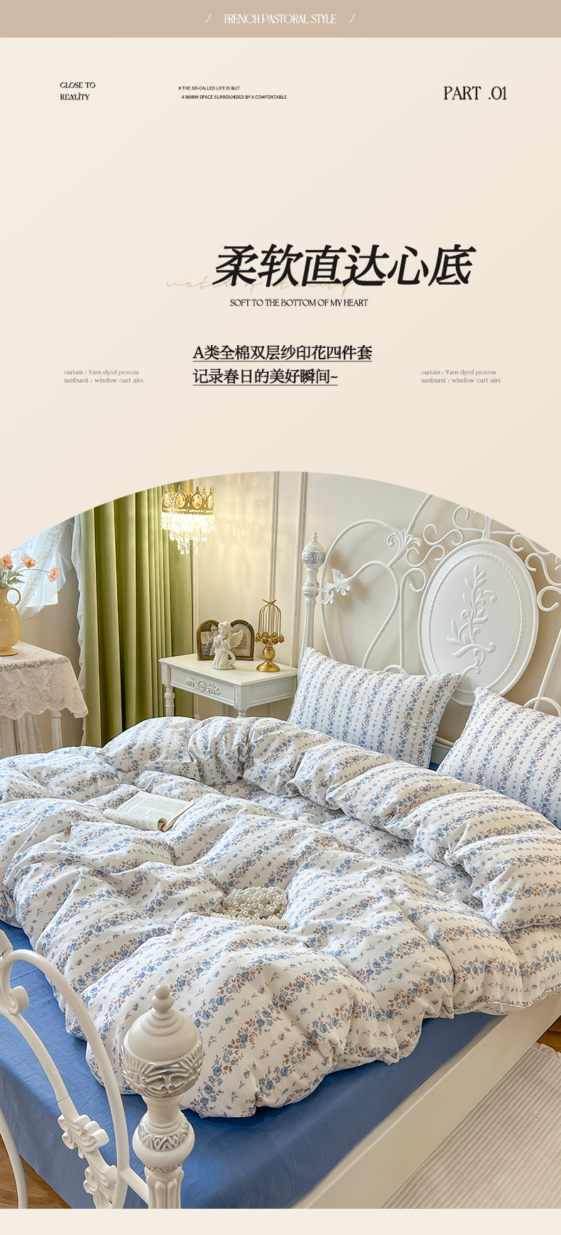 当前位置: 91家纺网 > 商品网购 > 床品套件 > 四件套 > 双层纱四件套 > 麒豆豆 2024款全棉双层纱四件套兰羽
