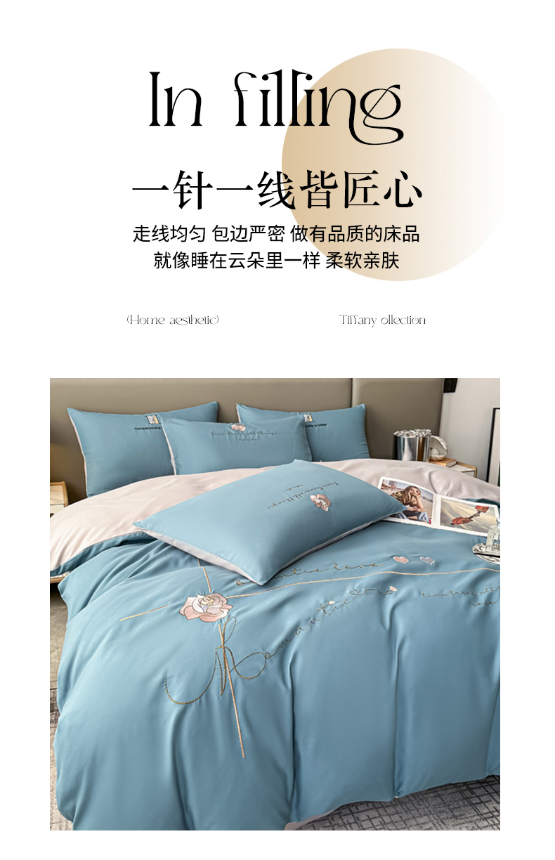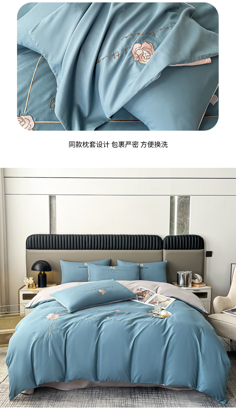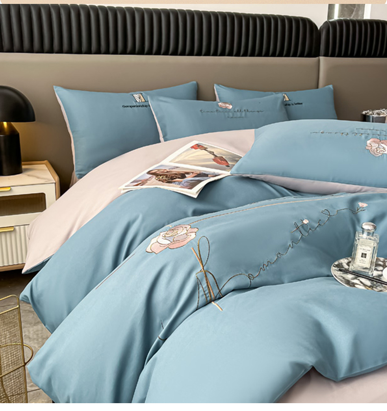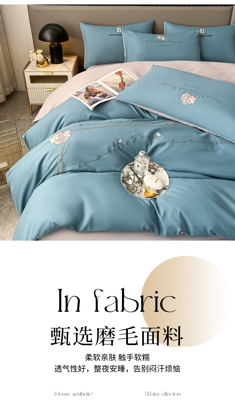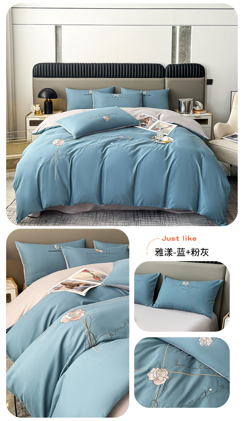 栩裕纺织 2025新磨毛绣花四件套 雅漾-蓝+粉灰