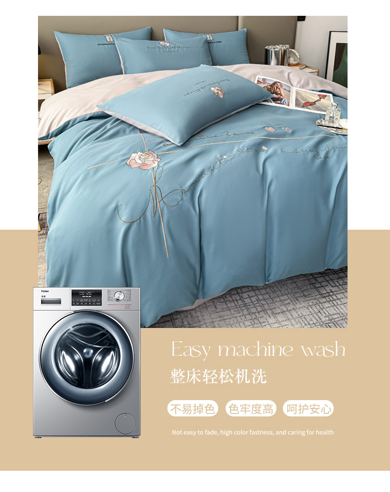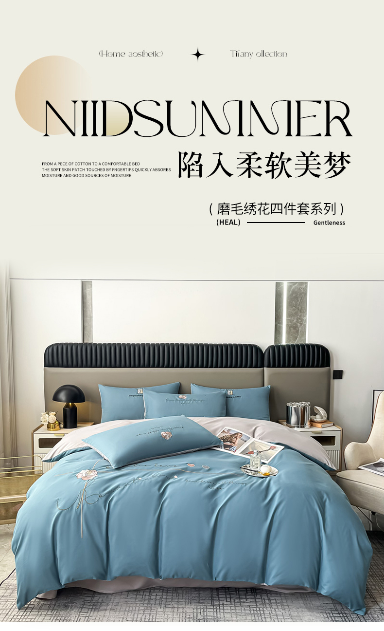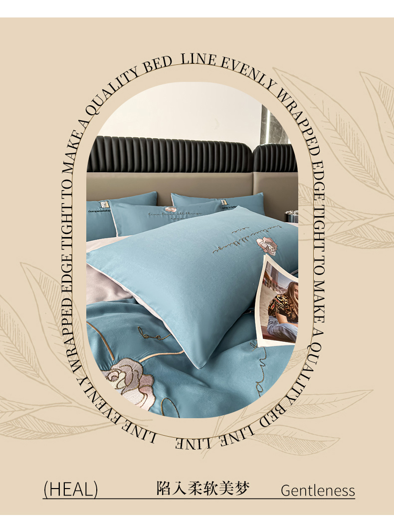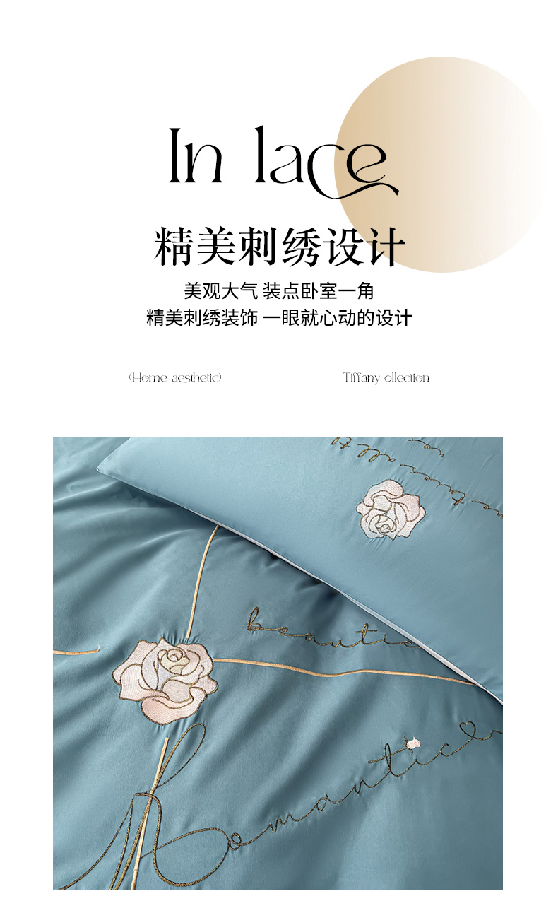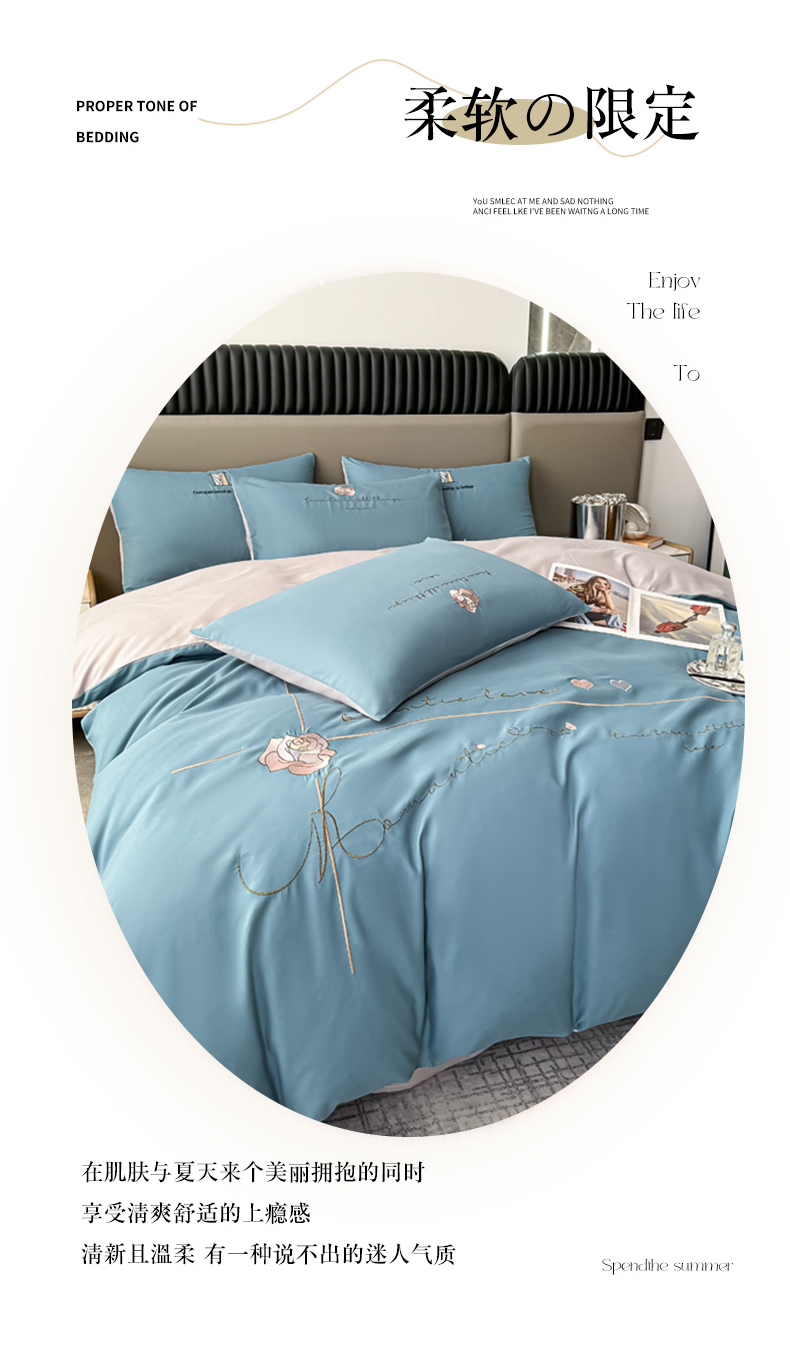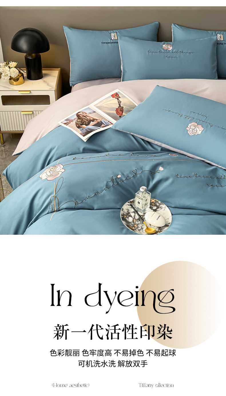 栩裕纺织 2025新磨毛绣花四件套 雅漾-蓝+粉灰