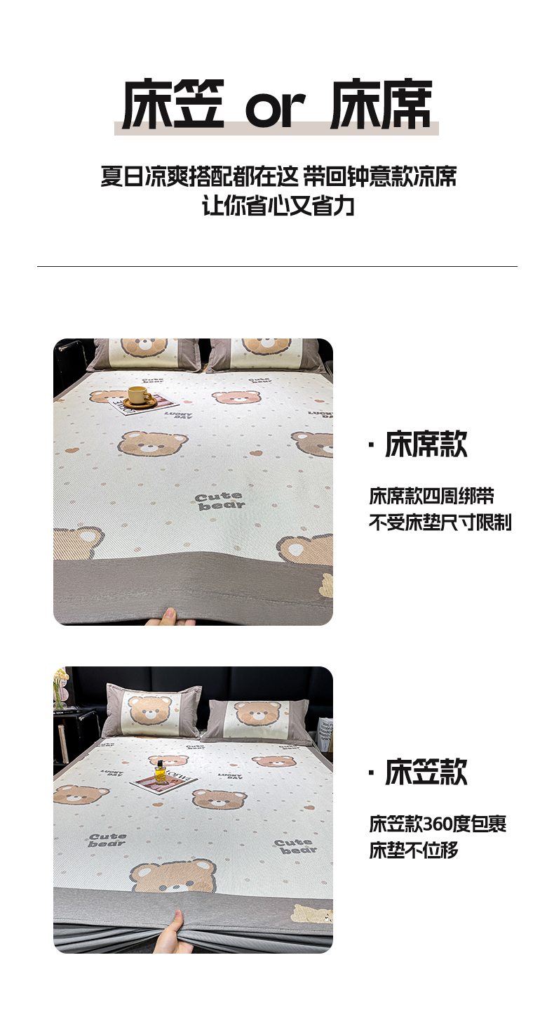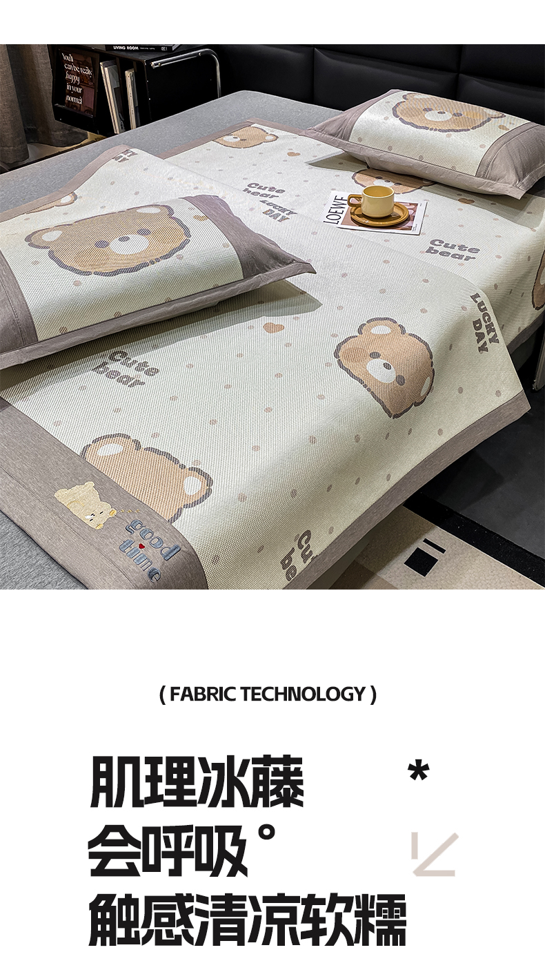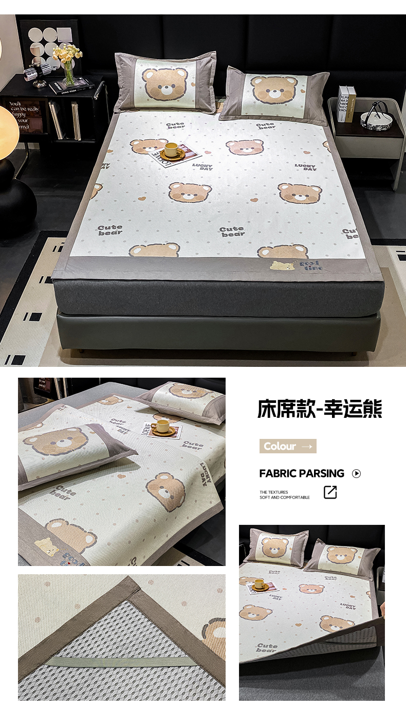 商品名称:宜家坊 2024新款A类抗菌数码印花冰藤凉席 床席款-幸运熊