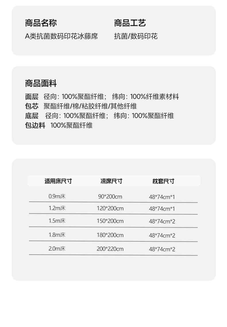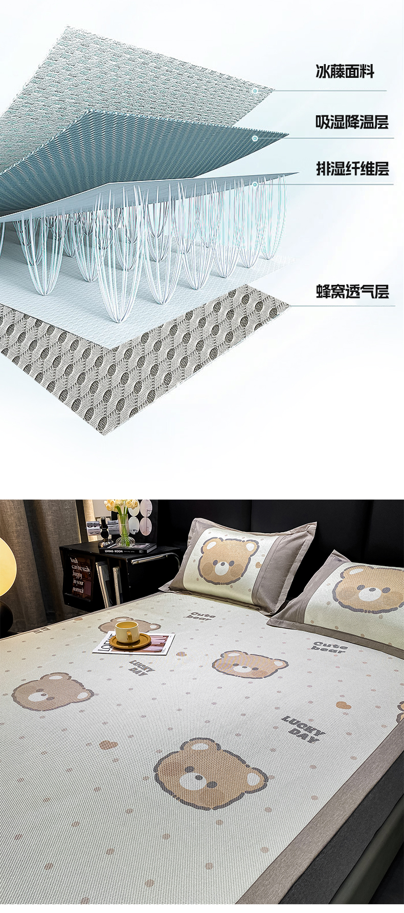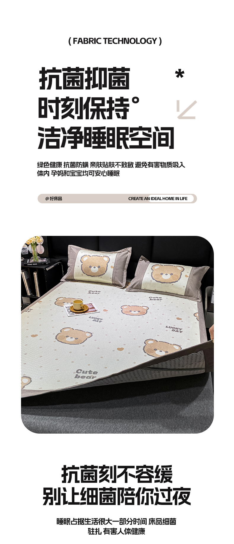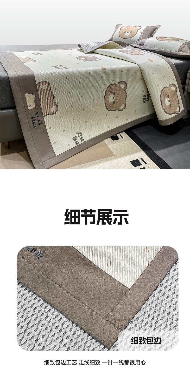 商品名称:宜家坊 2024新款A类抗菌数码印花冰藤凉席 床席款-幸运熊