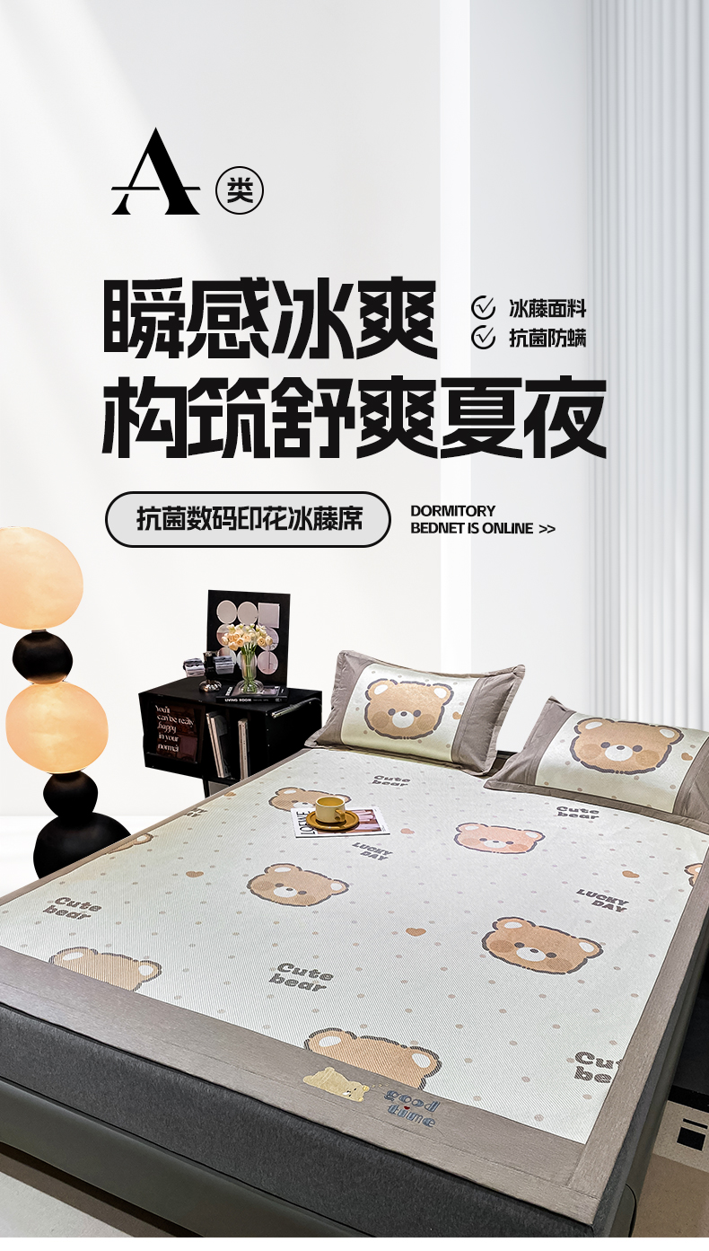 宜家坊 2024新款A类抗菌数码印花冰藤凉席 床席款-幸运熊