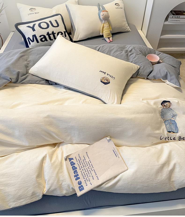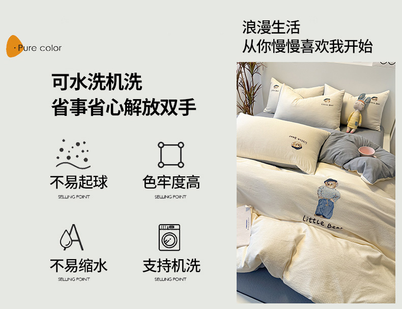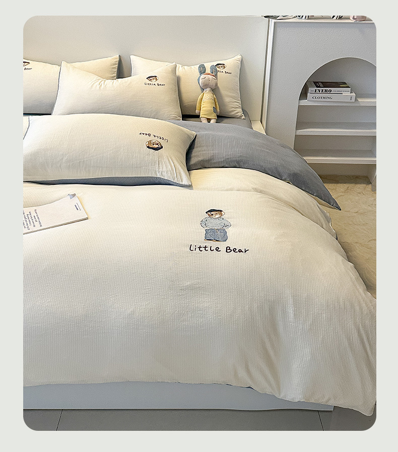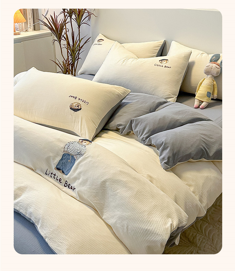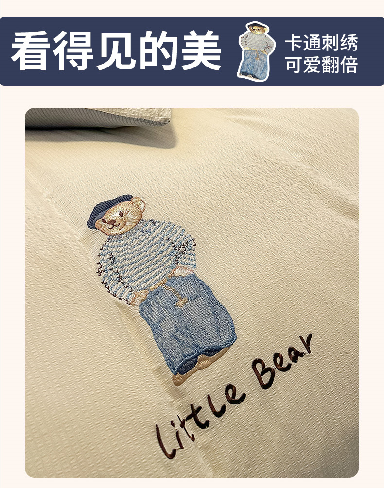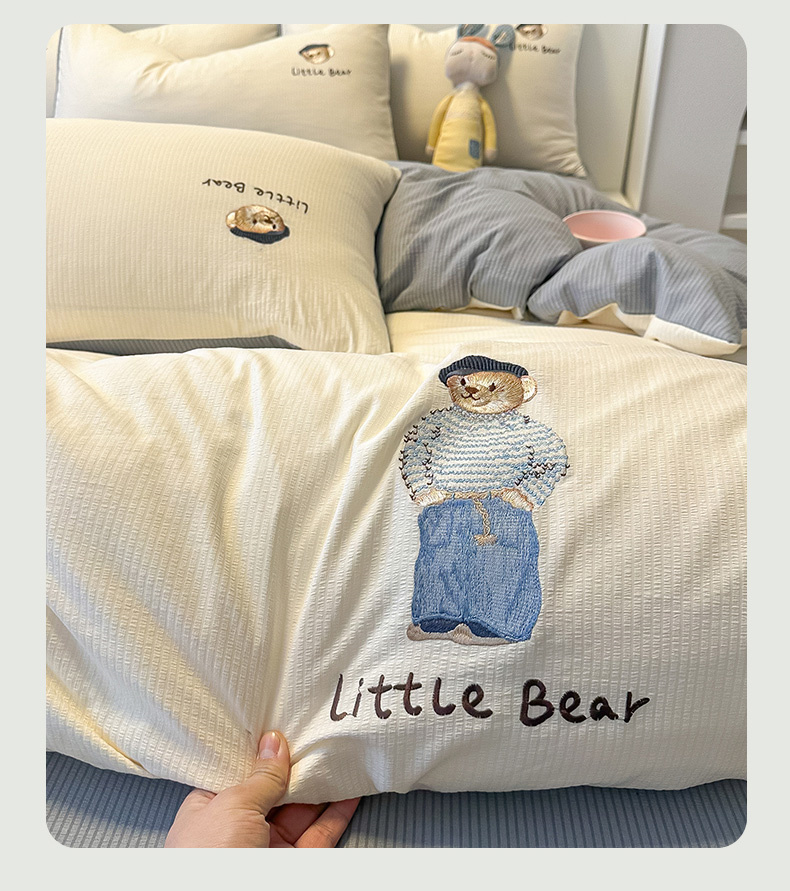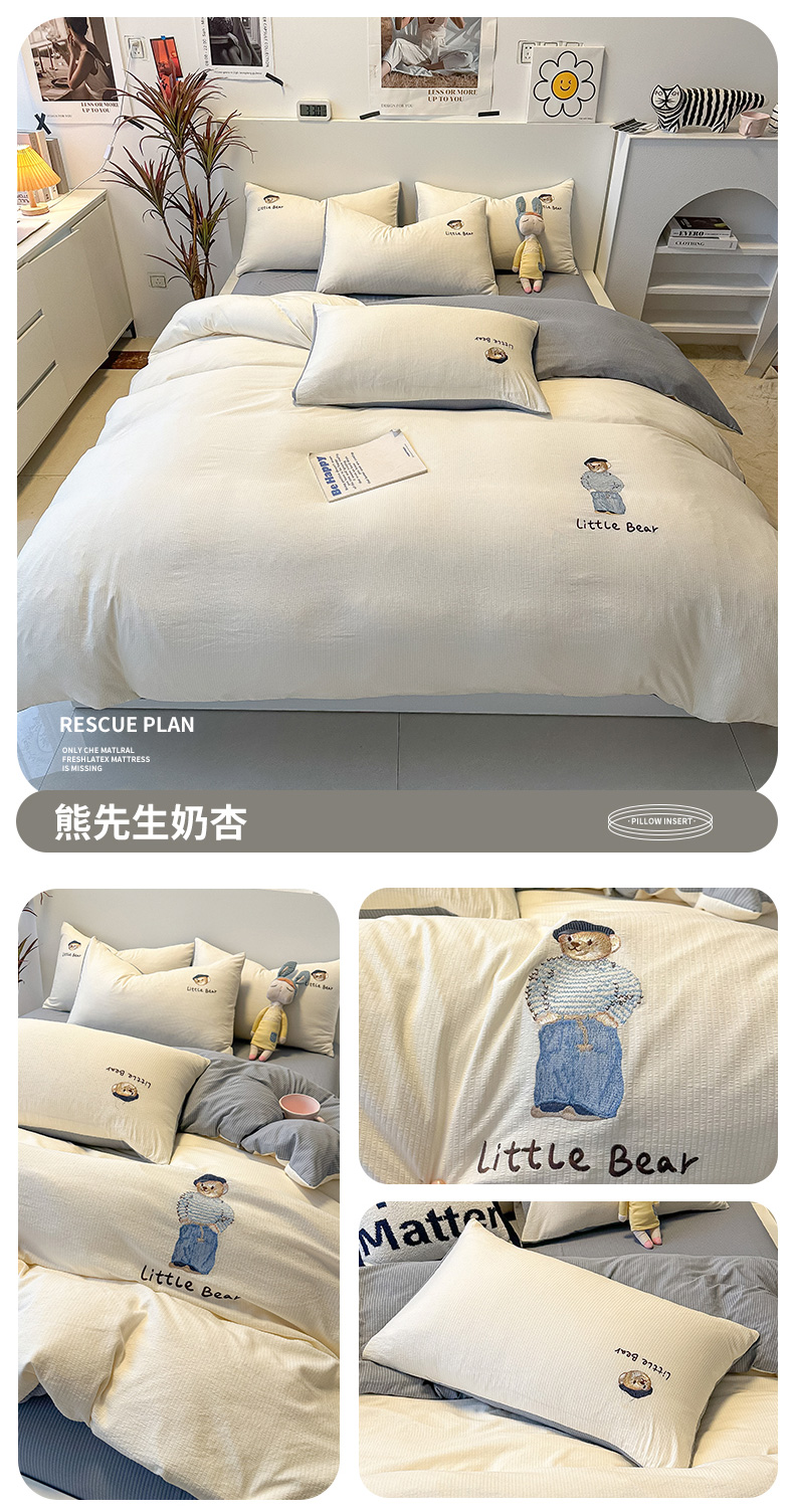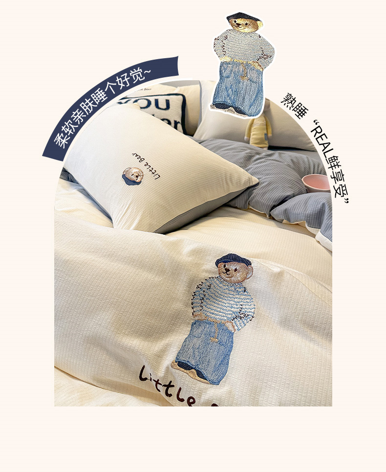 当前位置: 91家纺网 > 商品网购 > 床品套件 > 四件套 > 水洗棉四件套 > 眠帛家居 2024新款水洗棉提花刺绣四件套-熊先生 熊先生-奶杏