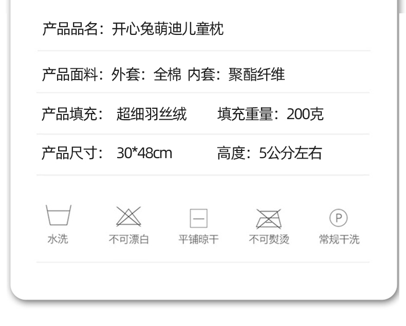 当前位置: 91家纺网 > 商品网购 > 枕头/枕芯/保健枕/颈椎枕 > 普通枕芯 > 麦肯锡 2024新款开心兔萌迪儿童枕30*48 粉色