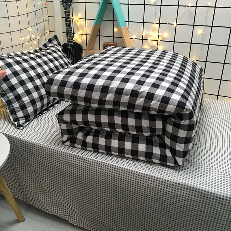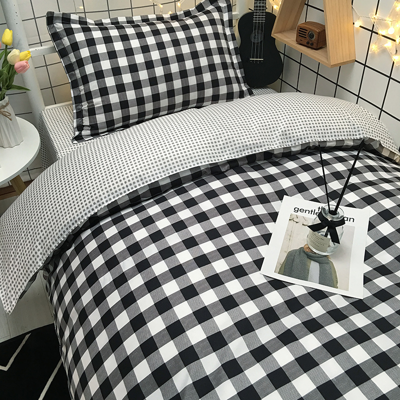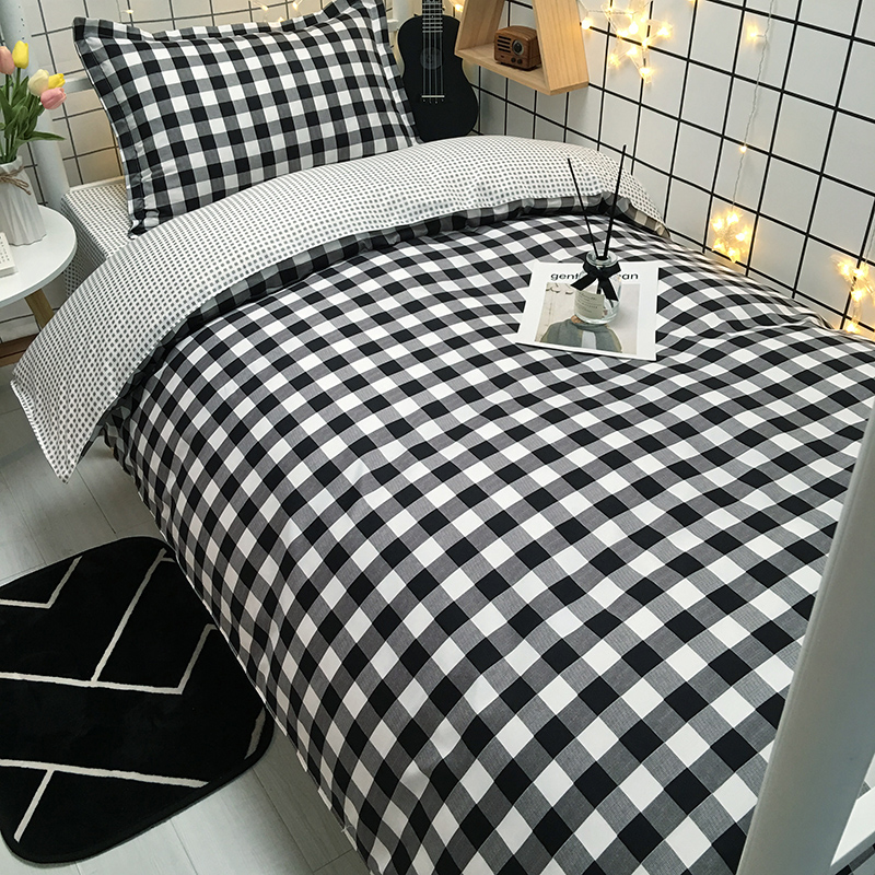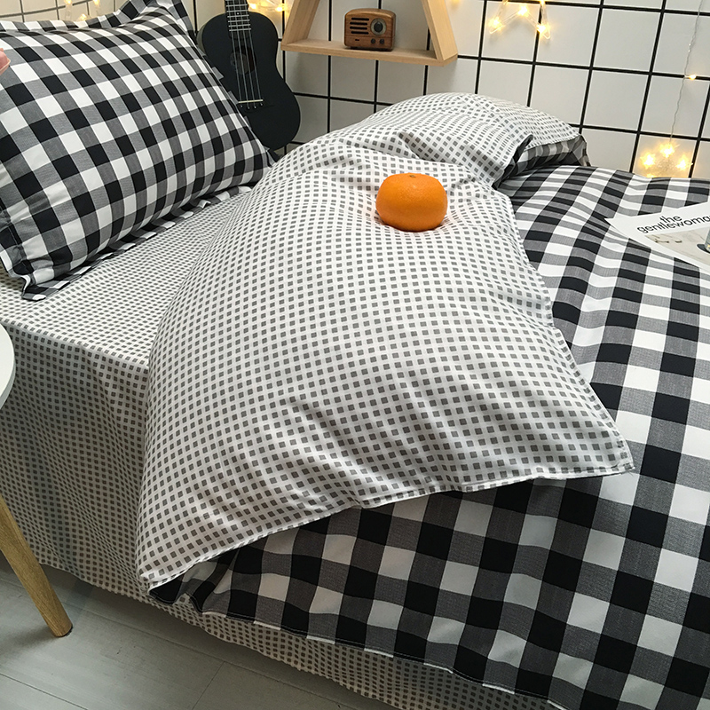 商品名称:港岛妹妹 2024新款芦荟棉印花四件套四件套学生床宿舍图黑白格