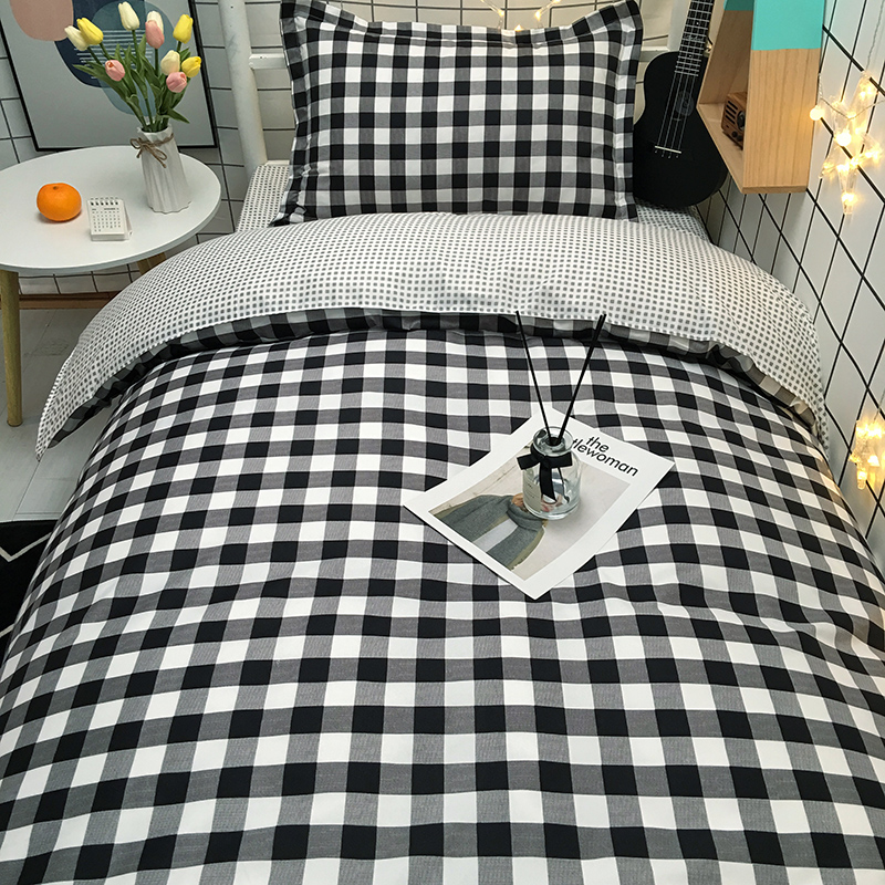 港岛妹妹 2024新款芦荟棉印花四件套四件套学生床宿舍图黑白格