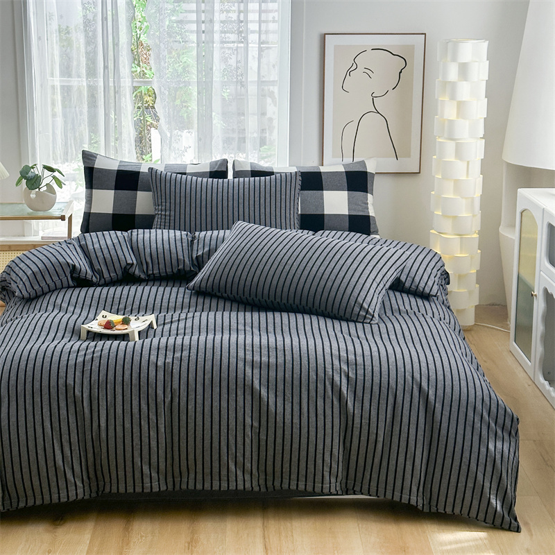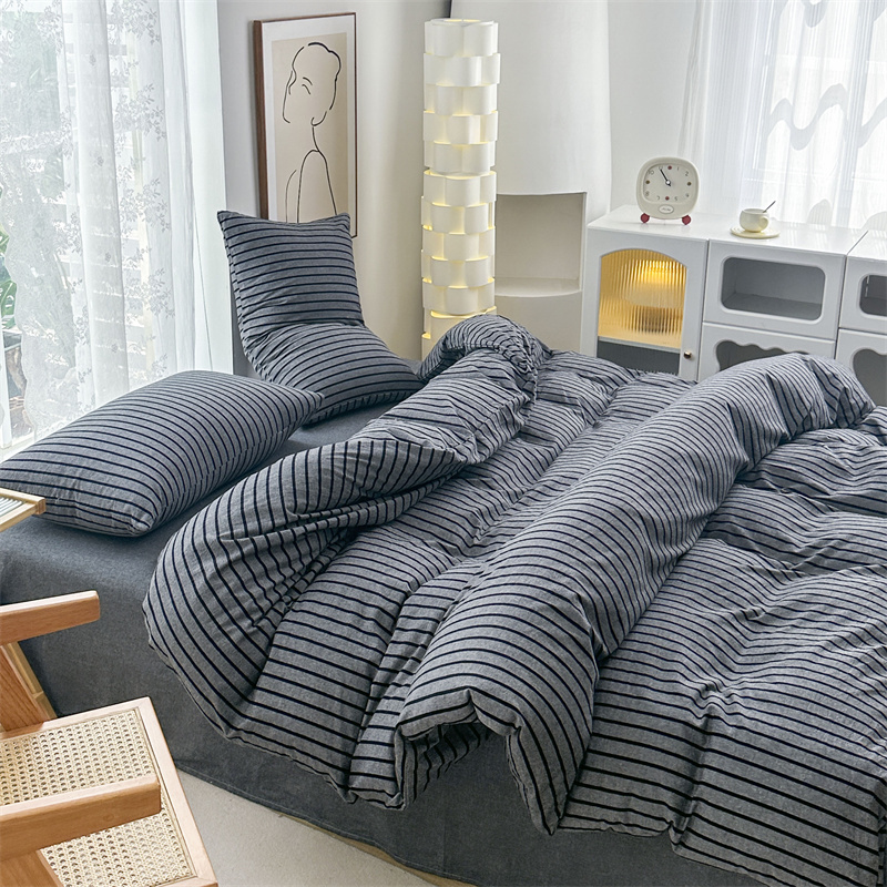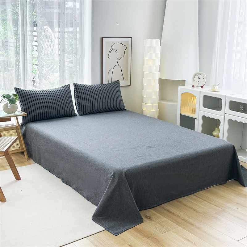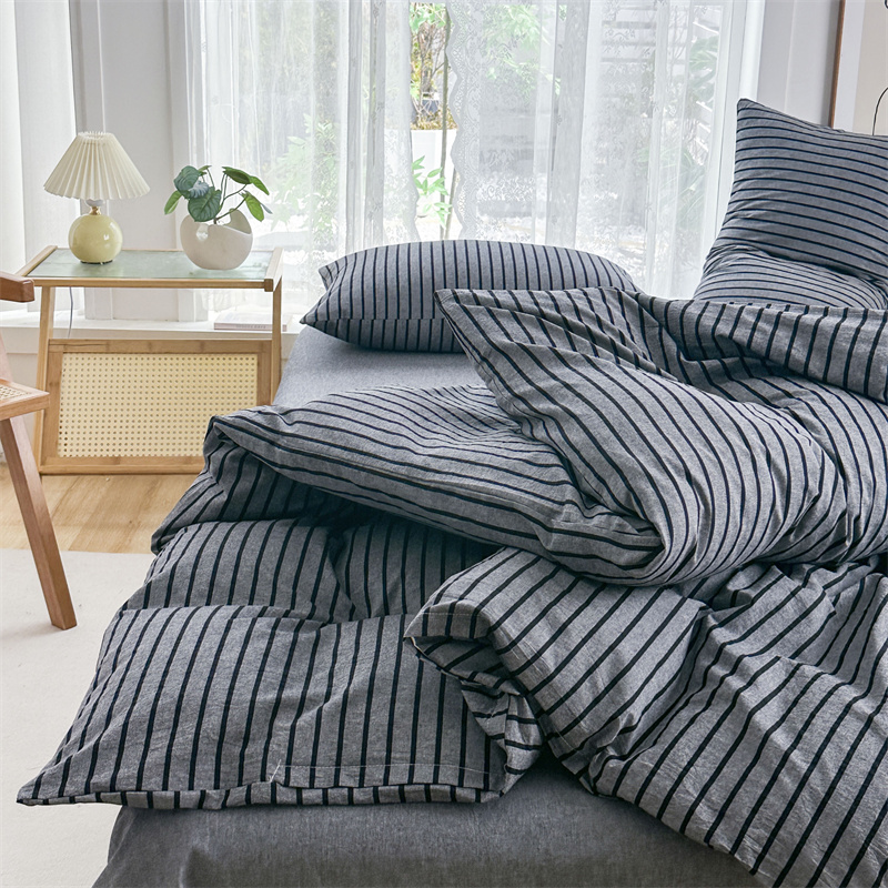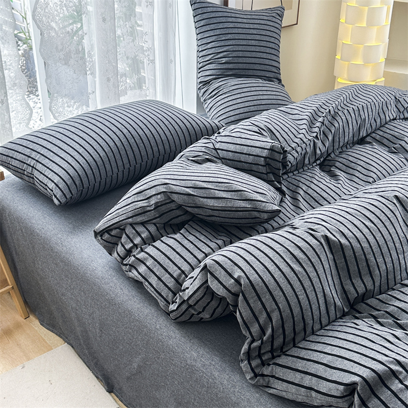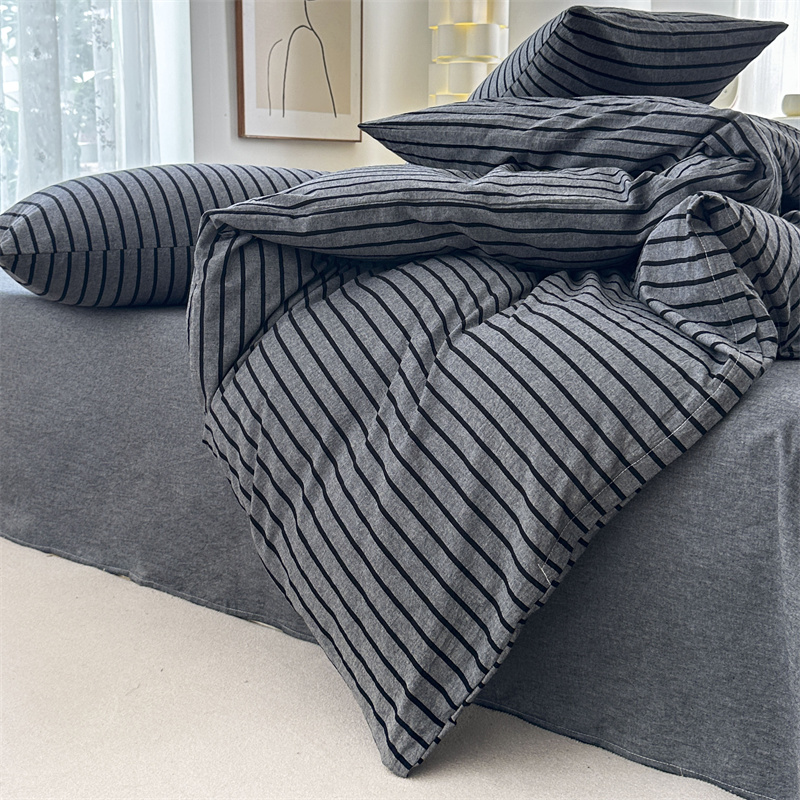当前位置: 91家纺网 > 商品网购 > 床品套件 > 四件套 > 全棉普通四件套 > 青螺家纺 2024全棉水洗棉双面色织条纹简约三件套四件套枕套床单 (支持一件定制) 简条纹绅灰