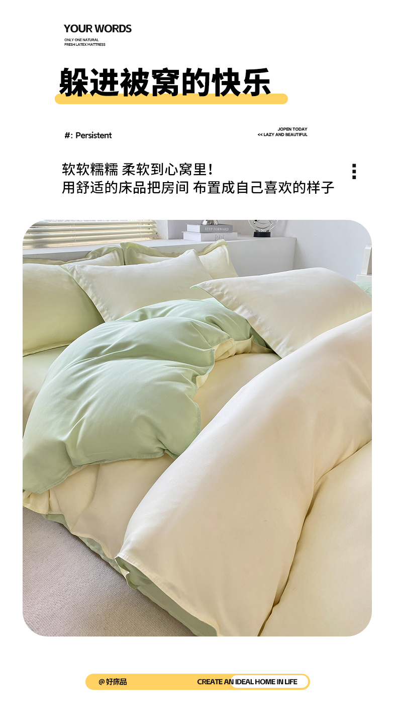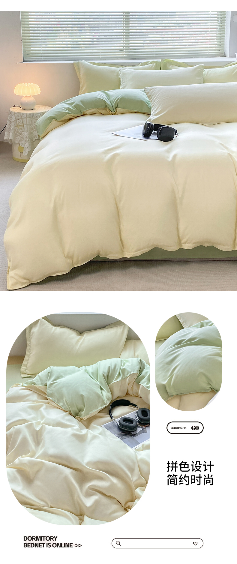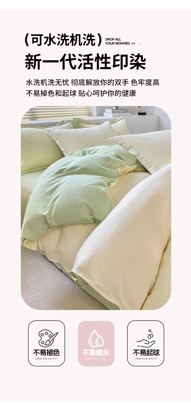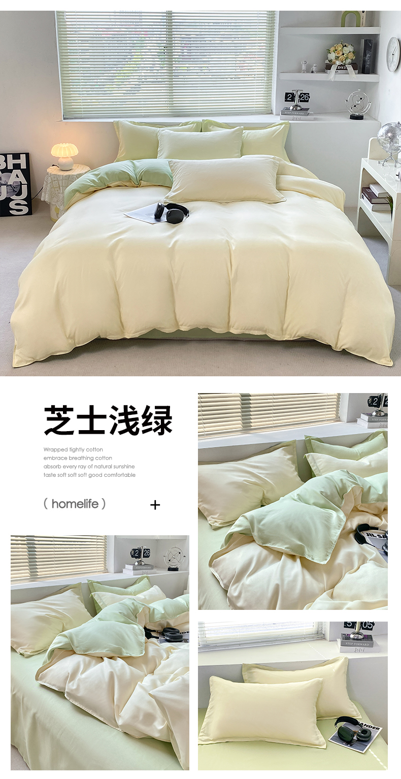 商品名称:米瑞娜 2024新款纯色双拼亲肤磨毛水洗棉四件套 芝士浅绿
