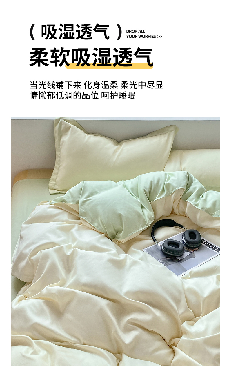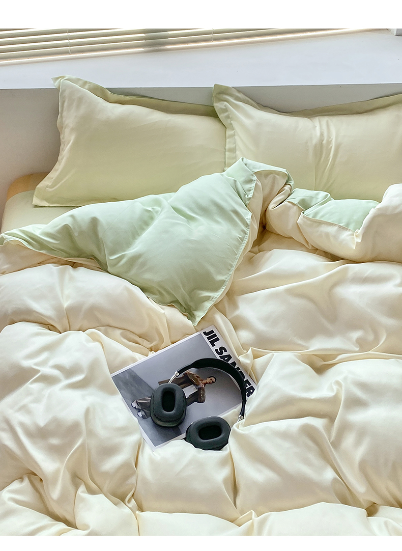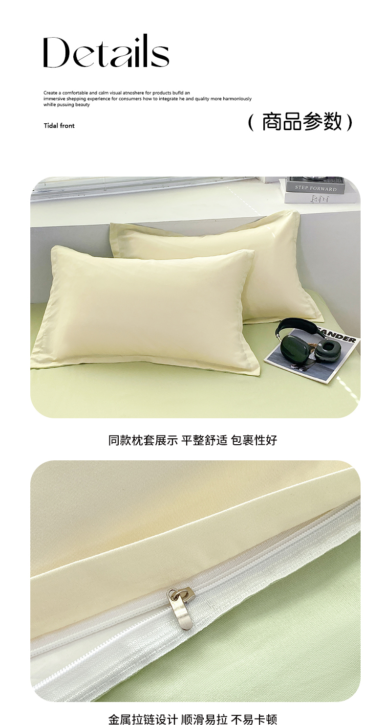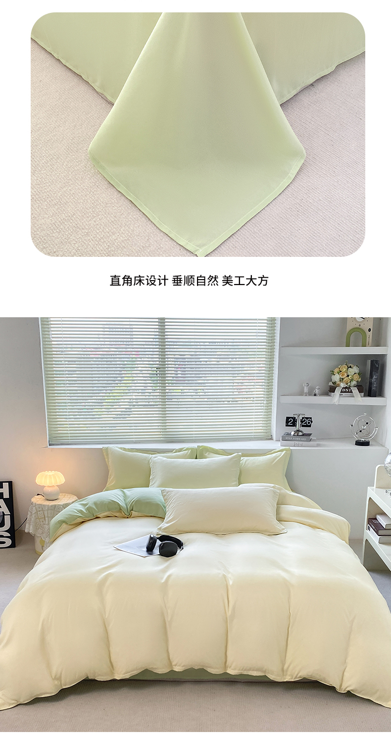 商品名称:米瑞娜 2024新款纯色双拼亲肤磨毛水洗棉四件套 芝士浅绿