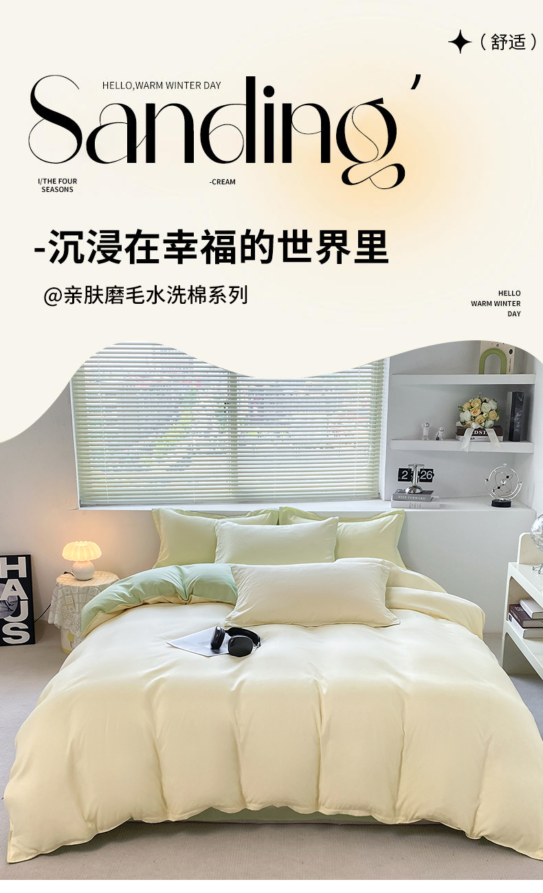 米瑞娜 2024新款纯色双拼亲肤磨毛水洗棉四件套 芝士浅绿