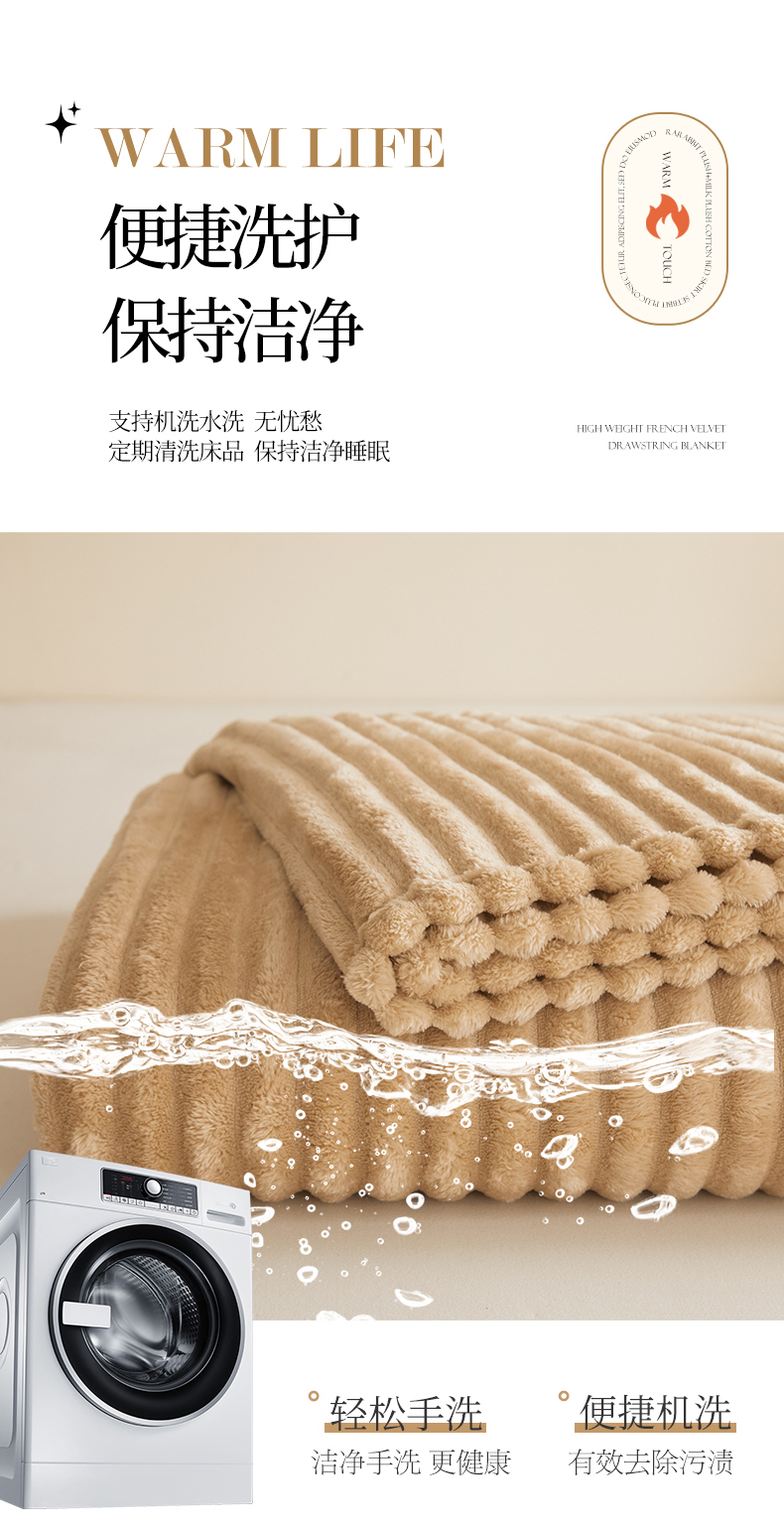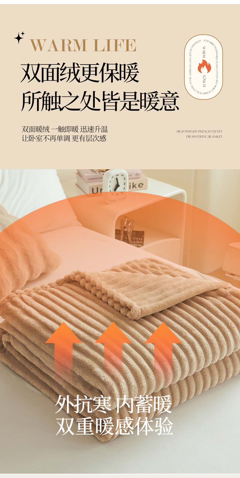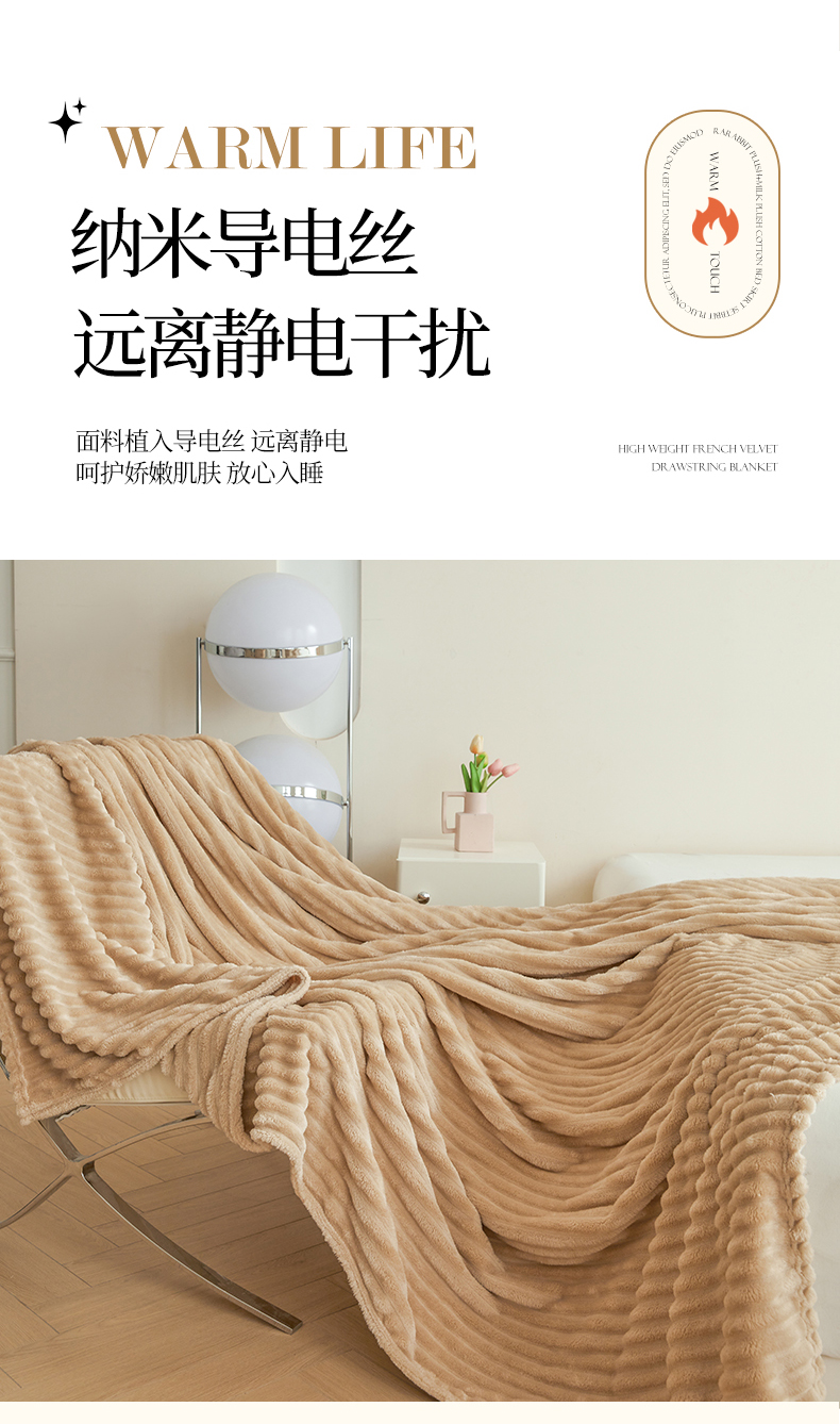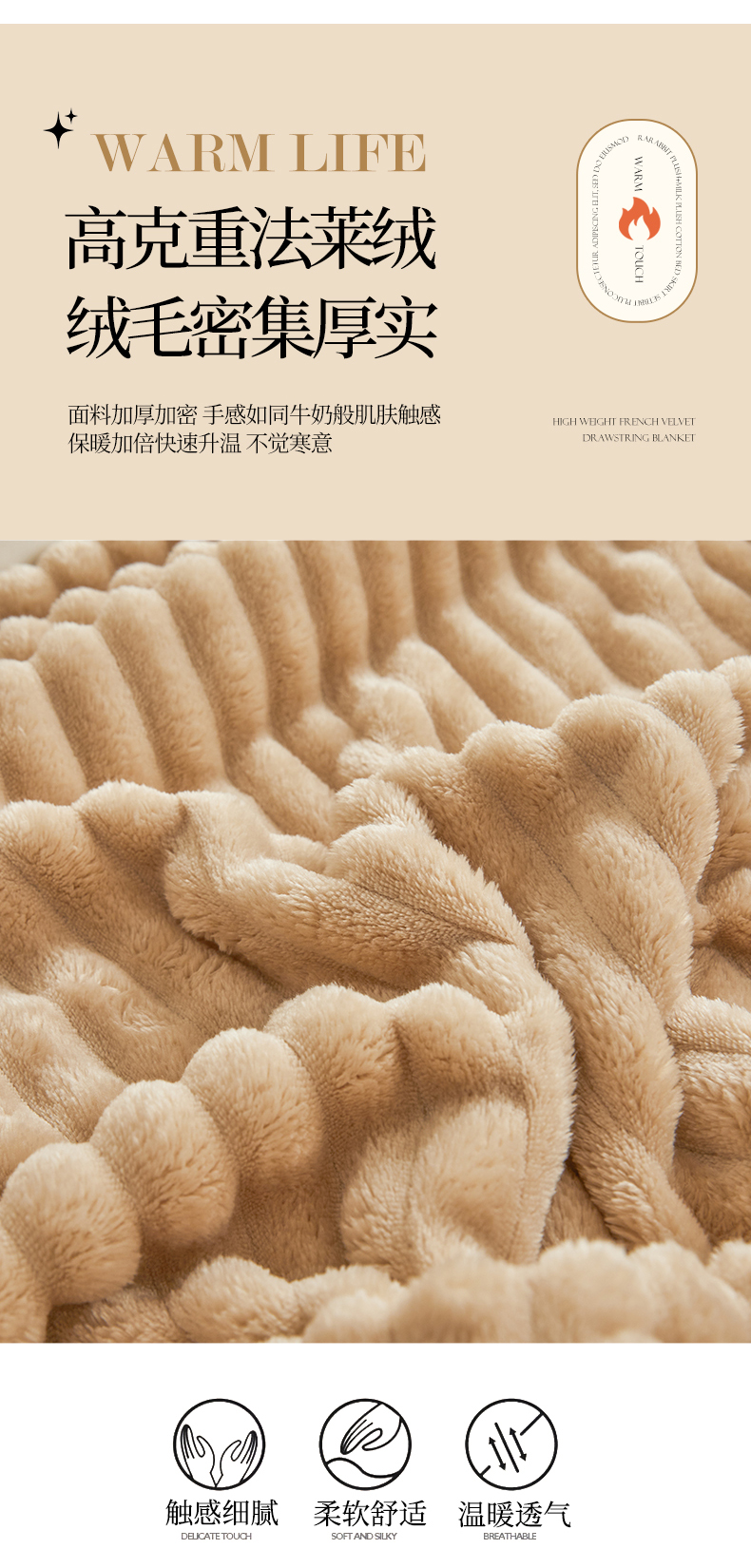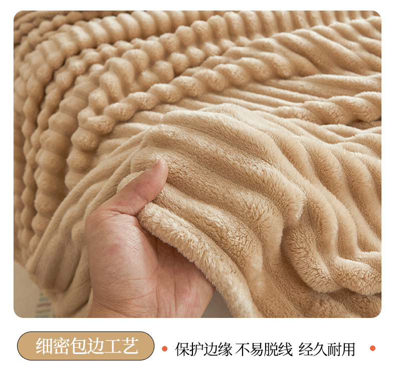 商品名称:予梦家纺 2024新款加厚纯色宽抽条剪花仿兔毛绒牛奶绒法兰绒盖毯(可供跨境) 奶咖条