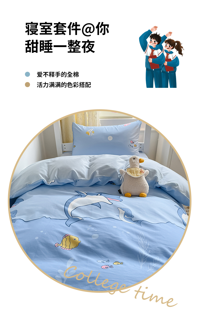 当前位置: 91家纺网 > 商品网购 > 床品套件 > 三件套 > 金鑫汇家纺 2024新款全棉宿舍印花三件套第二批 海洋三件套