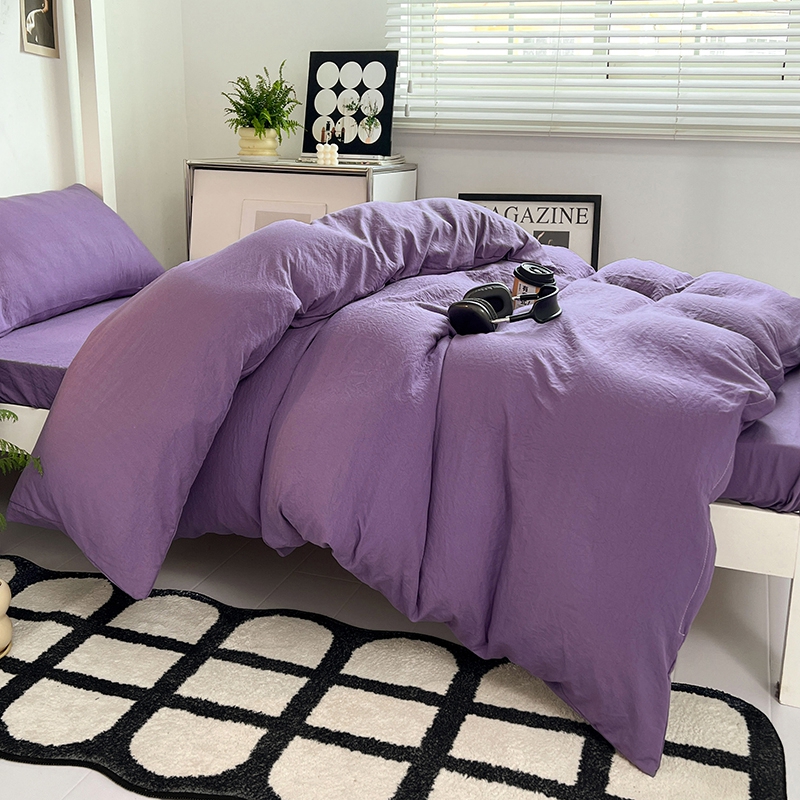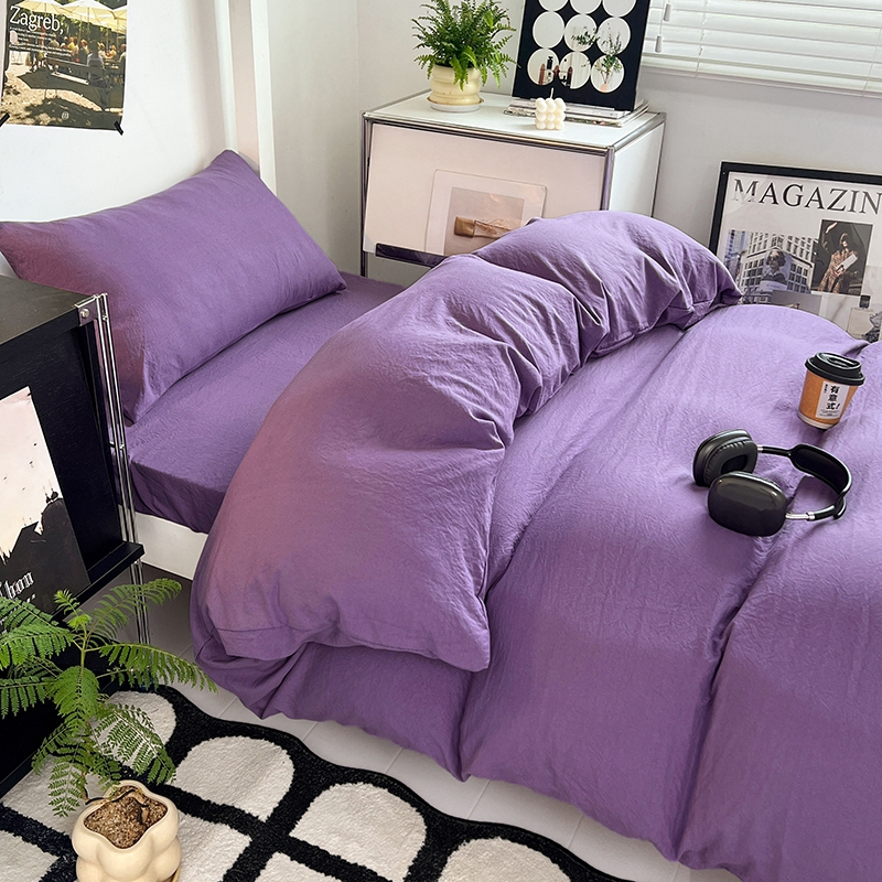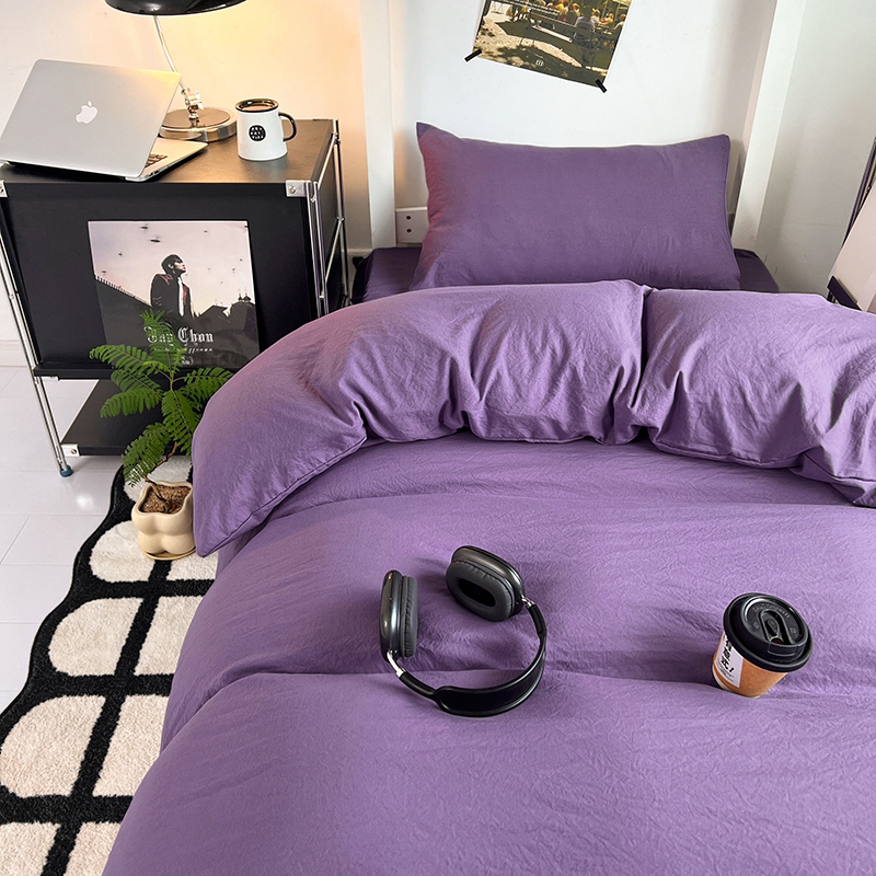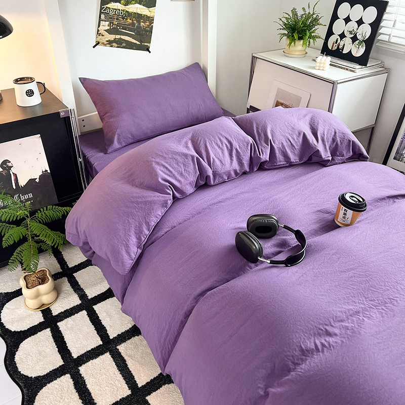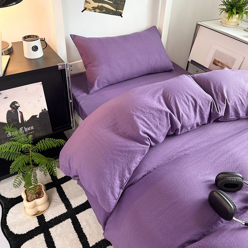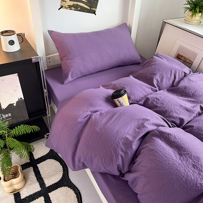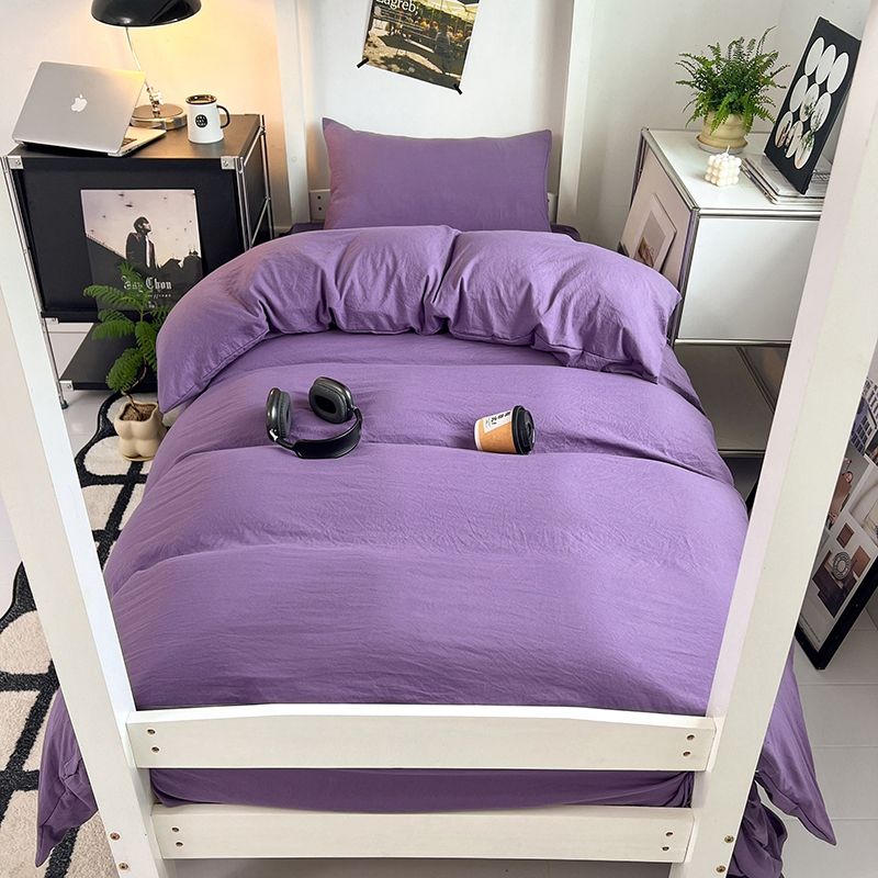 悦织湾家纺 2025新款水洗棉磨毛学生宿舍三件套 风信紫