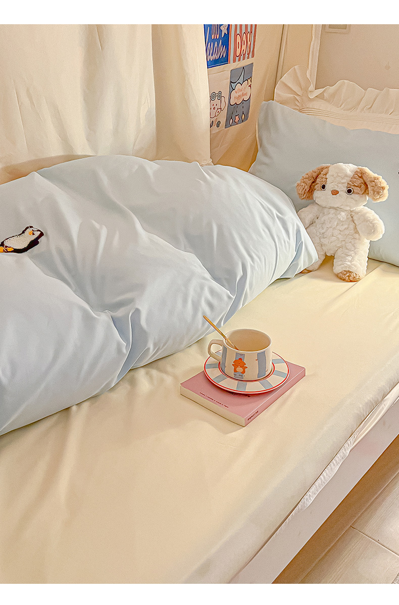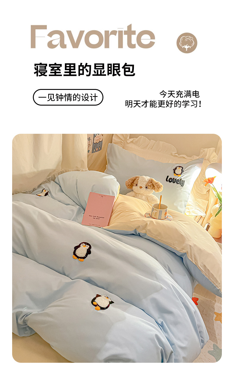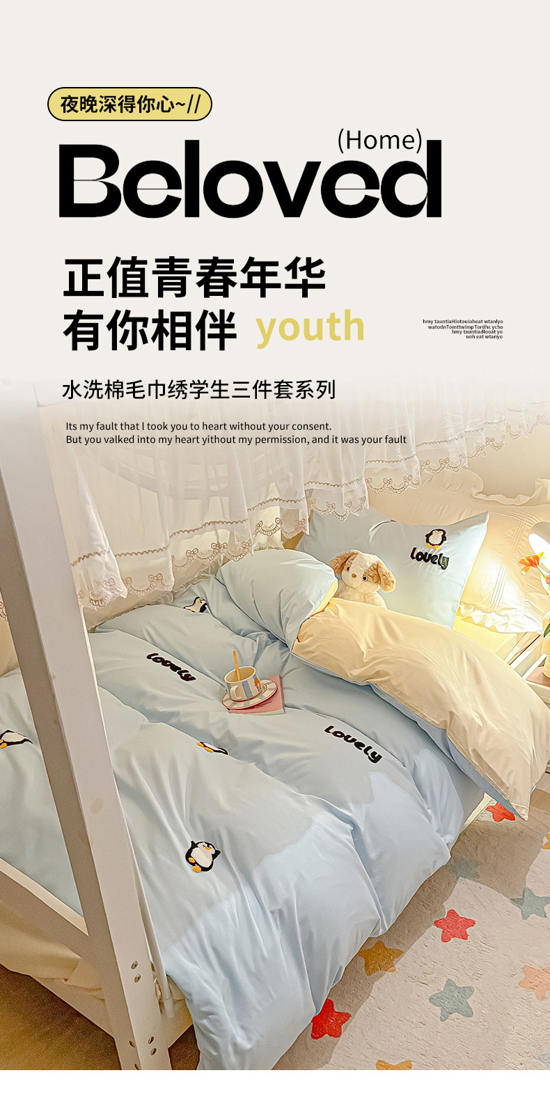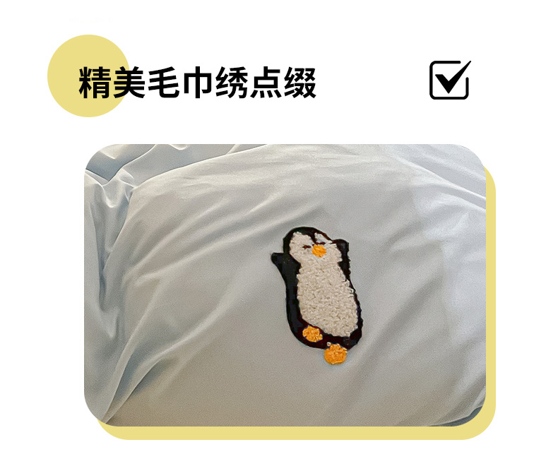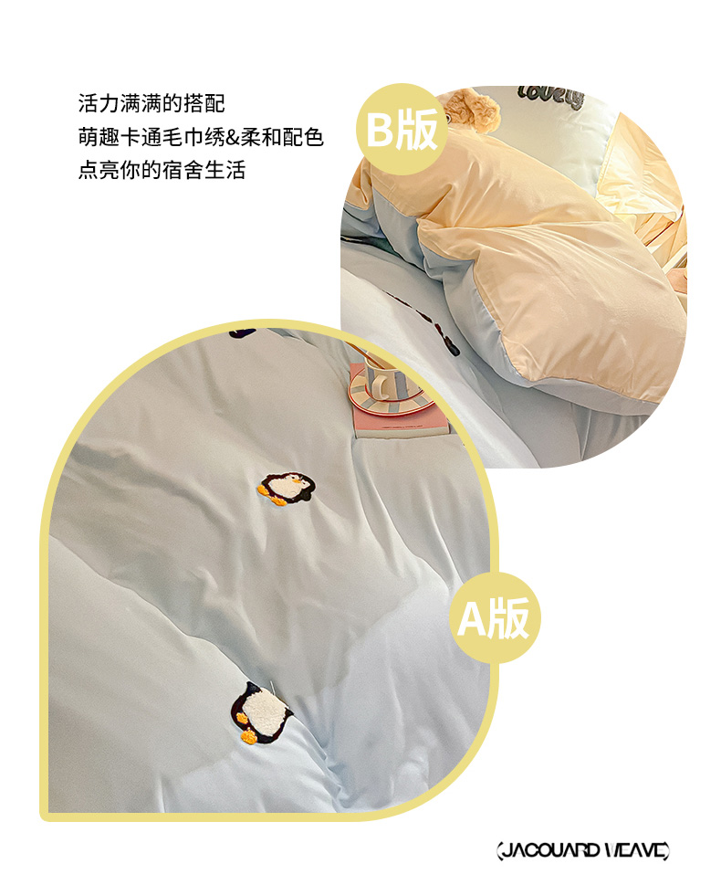 当前位置: 91家纺网 > 商品网购 > 床品套件 > 四件套 > 水洗棉四件套 > 2024新款水洗棉卡通小清新毛巾绣四件套宿舍三件套学生款 企鹅蛋-天空蓝奶黄