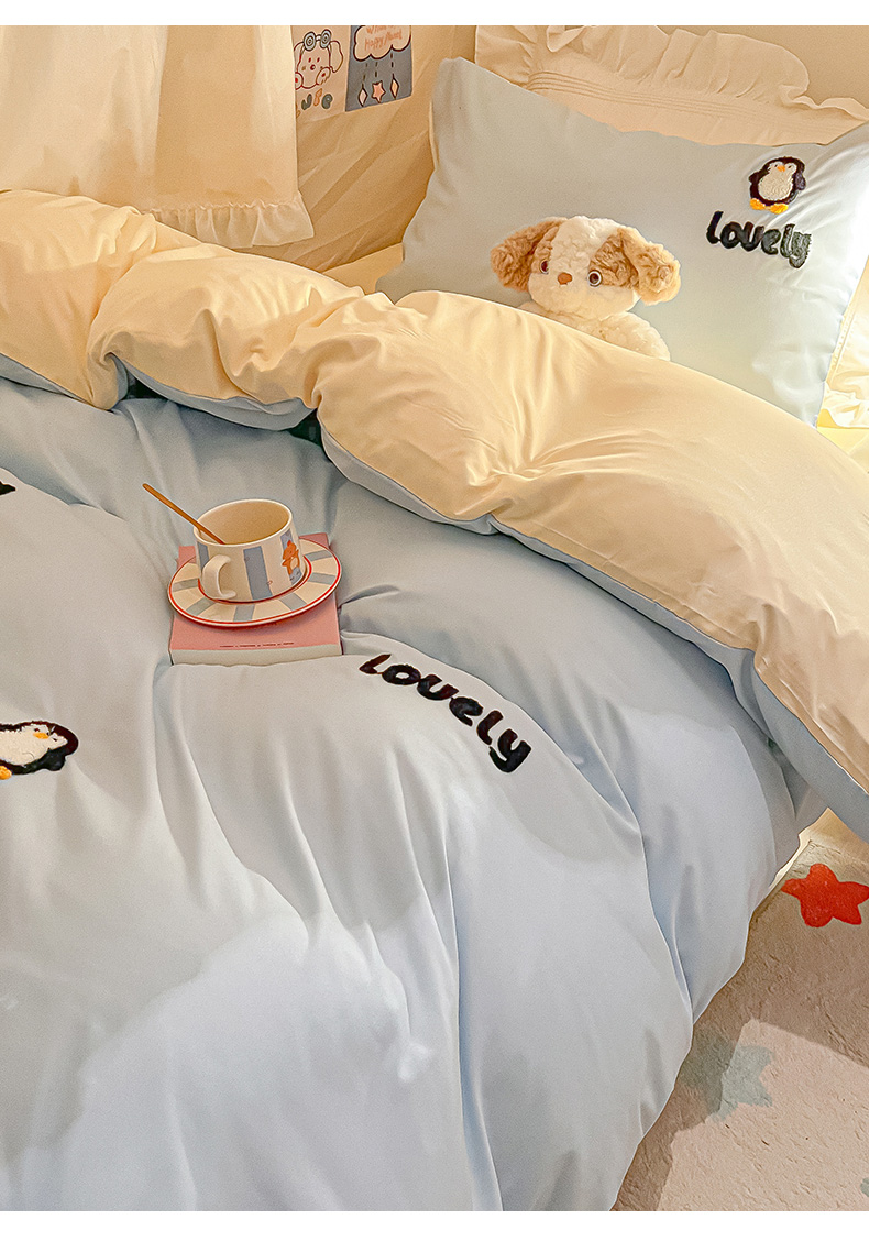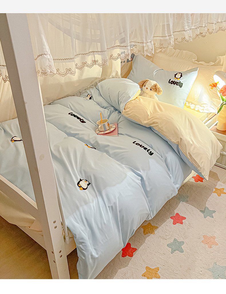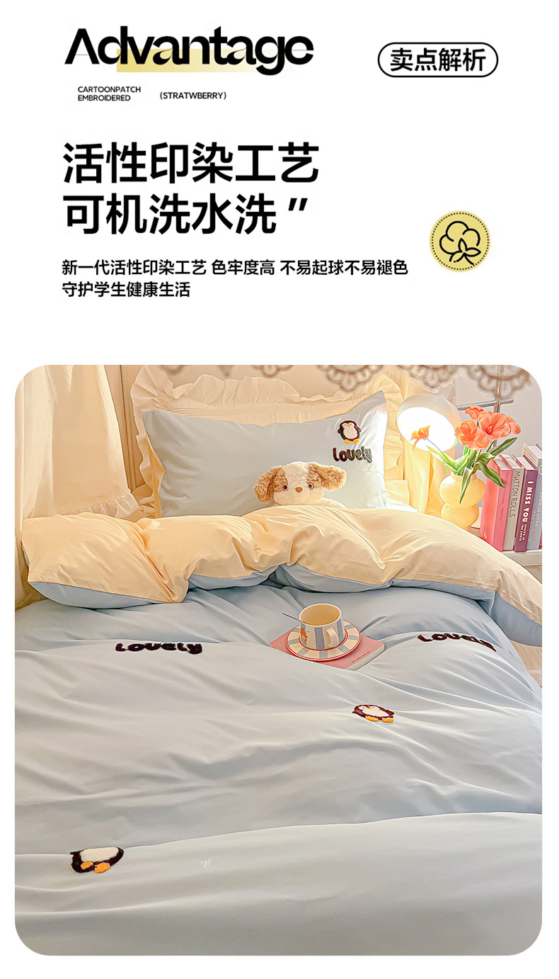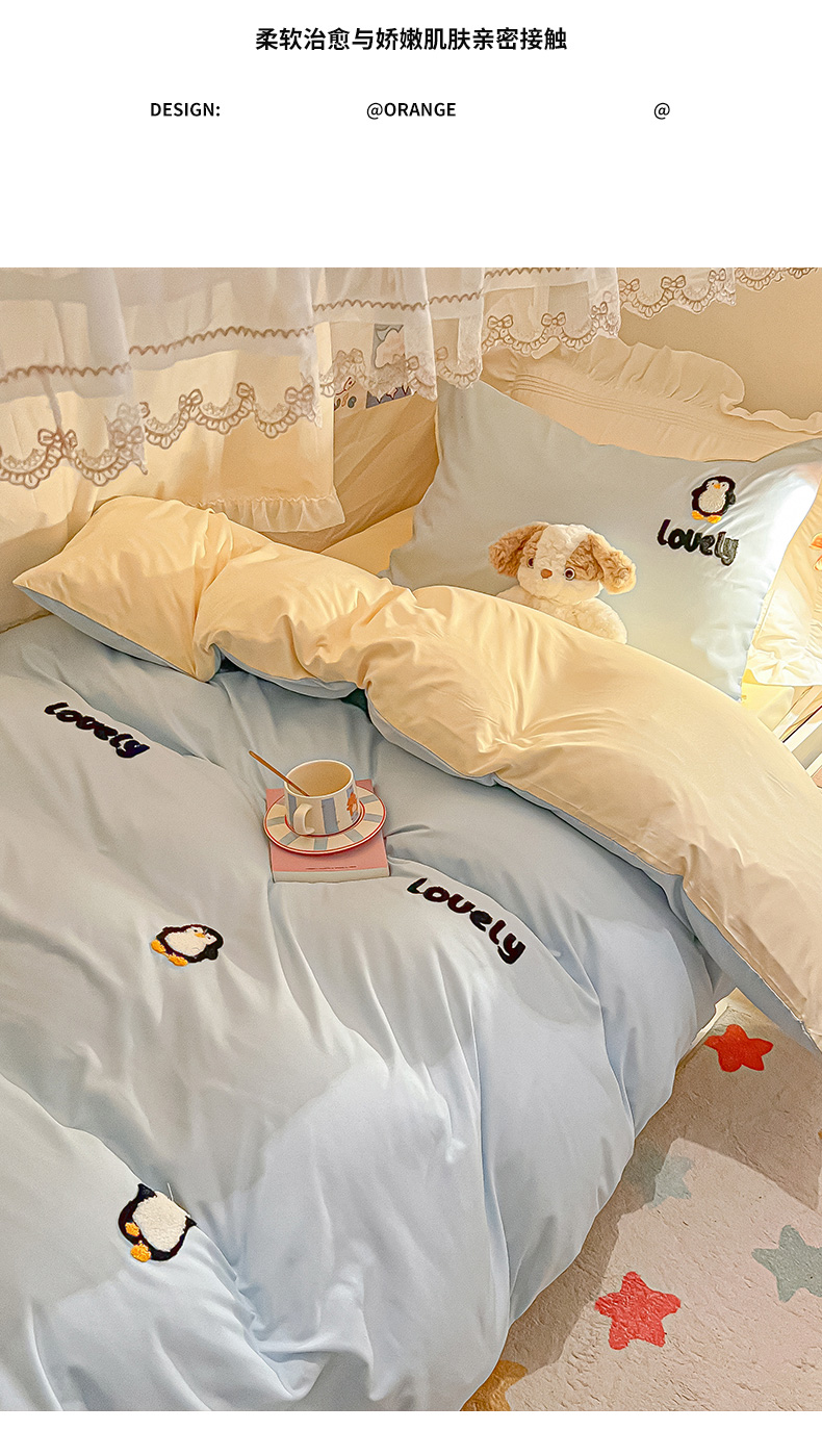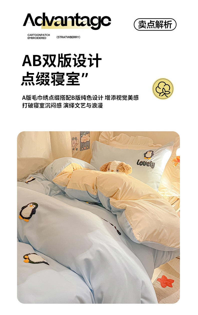 当前位置: 91家纺网 > 商品网购 > 床品套件 > 四件套 > 水洗棉四件套 > 2024新款水洗棉卡通小清新毛巾绣四件套宿舍三件套学生款 企鹅蛋-天空蓝奶黄