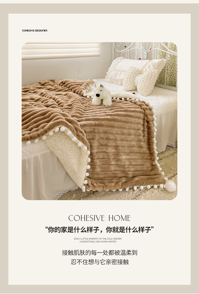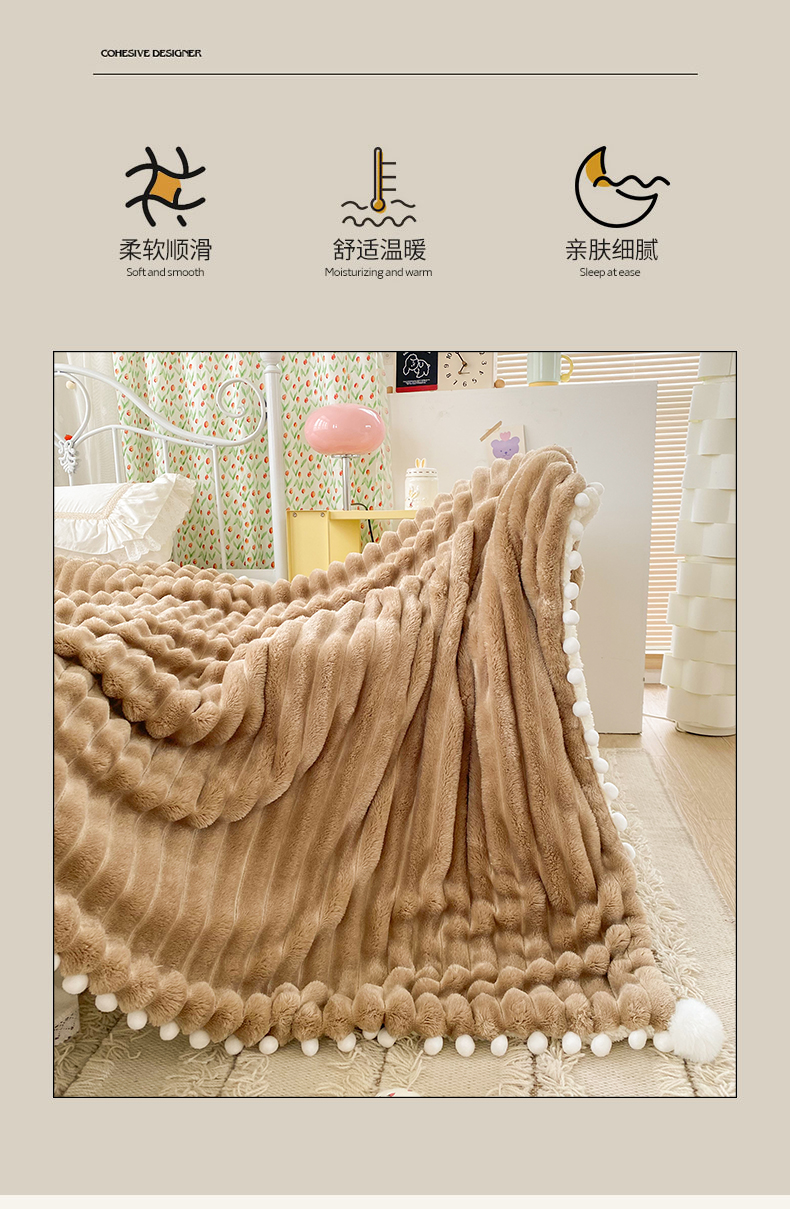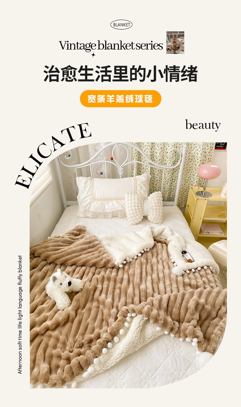 商品名称:潮邦创意家居 2025新款340G 4.5公分大抽条配羊羔绒立体工艺绒毯毛毯盖毯可供跨境电商可压缩 宽条球毯奶咖