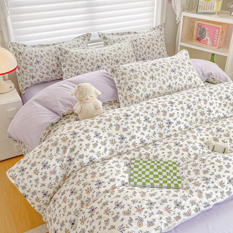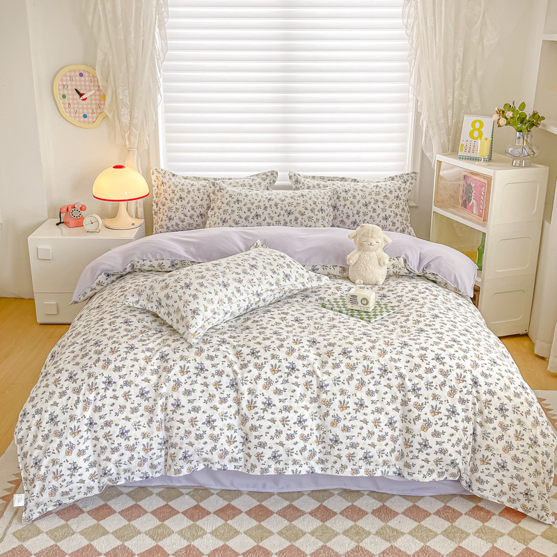 (总)楠沐家纺 2025年新款无印风学生印花四件套芦荟棉水洗棉,彩色波点,觅遇,晴空蓝格,亚麻灰格,烟雾灰格,英伦蓝格