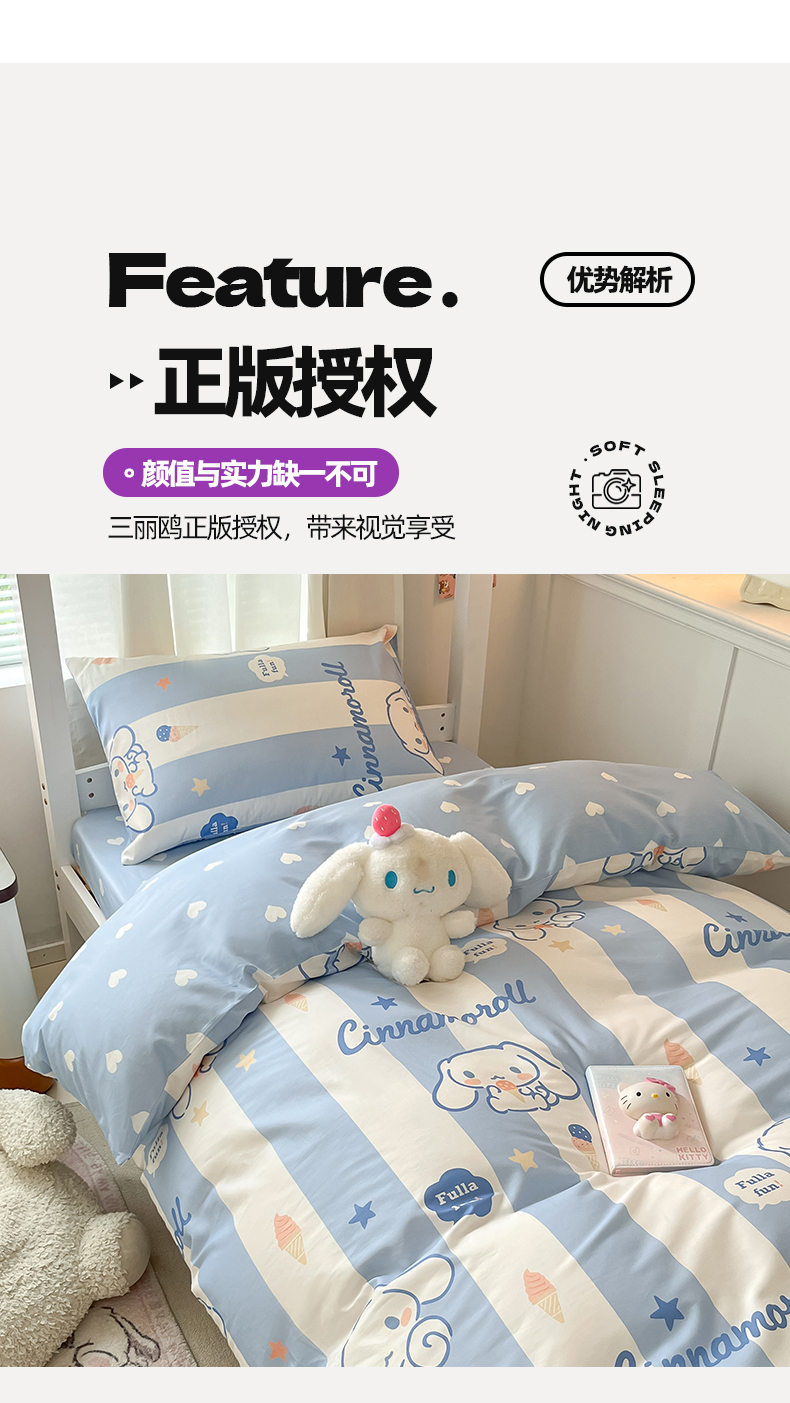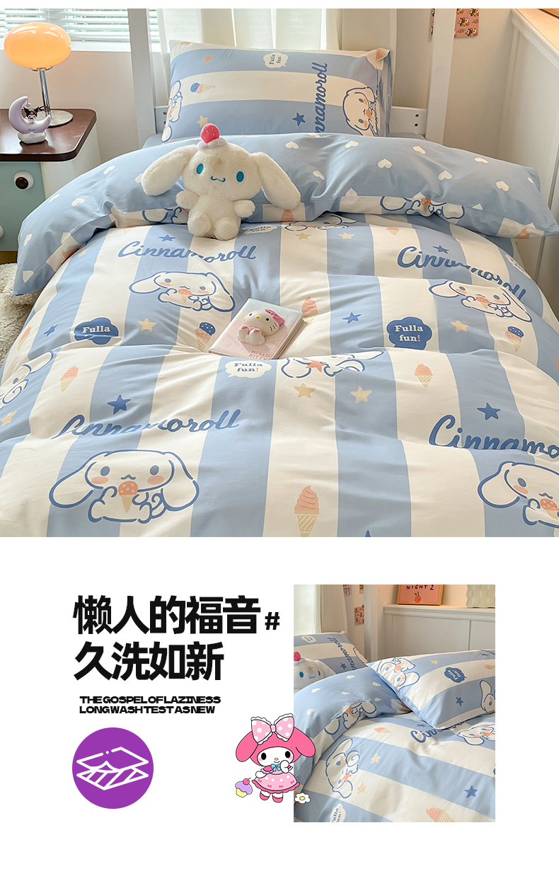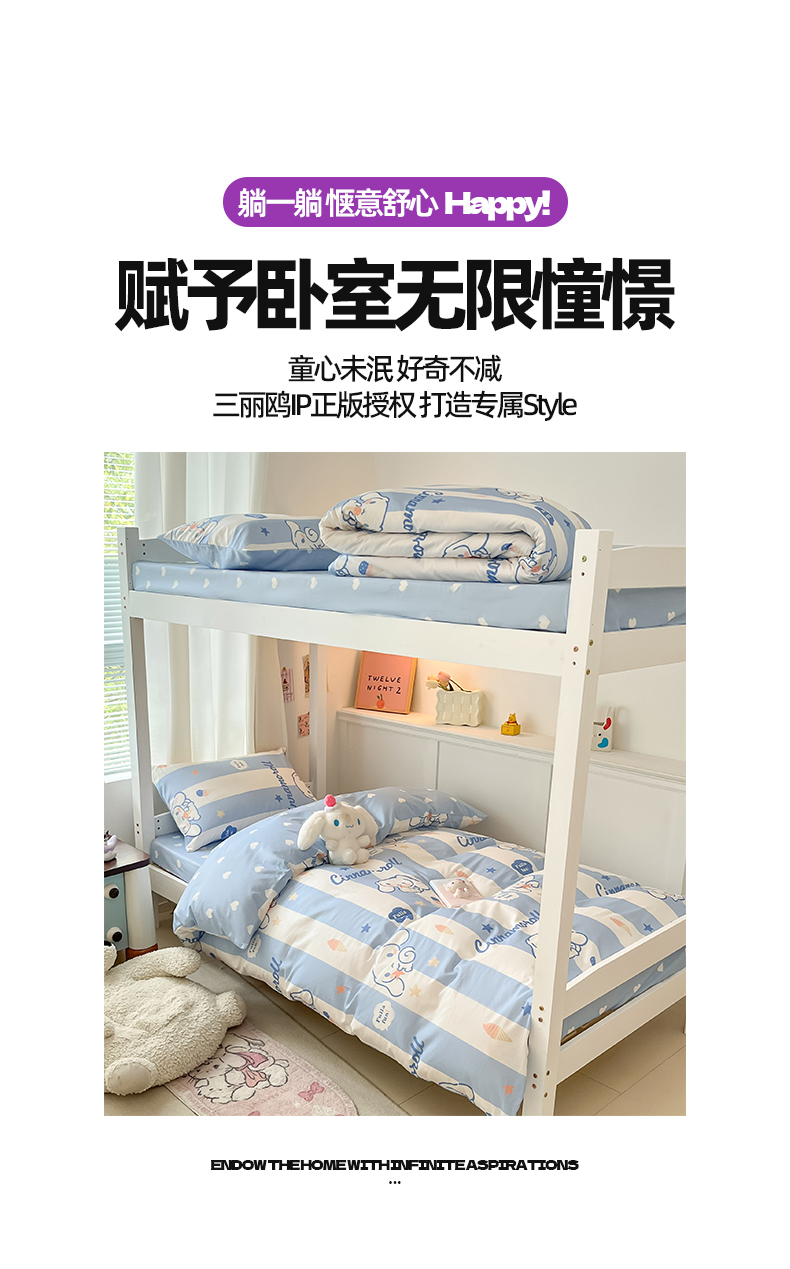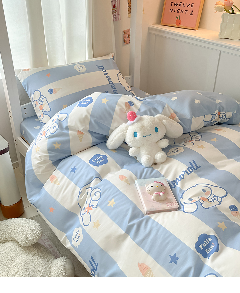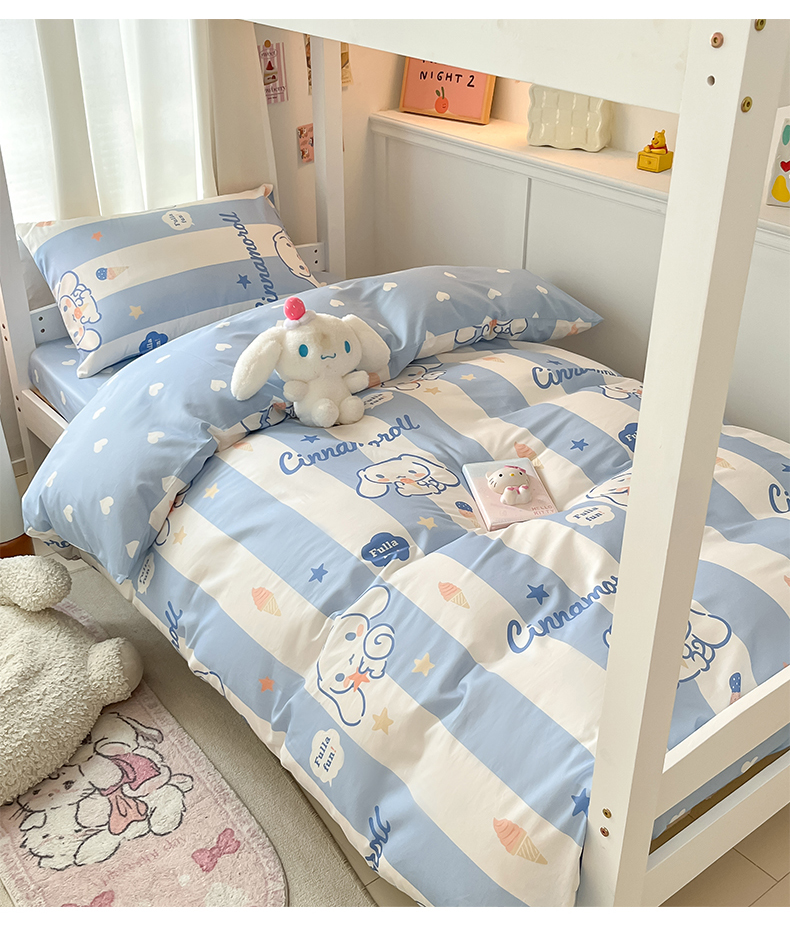 当前位置: 91家纺网 > 商品网购 > 床品套件 > 四件套 > 全棉普通四件套 > 2024新款三丽鸥授权全棉少女印花系列学生三件套四件套 棉三丽鸥-蓝条玉桂狗