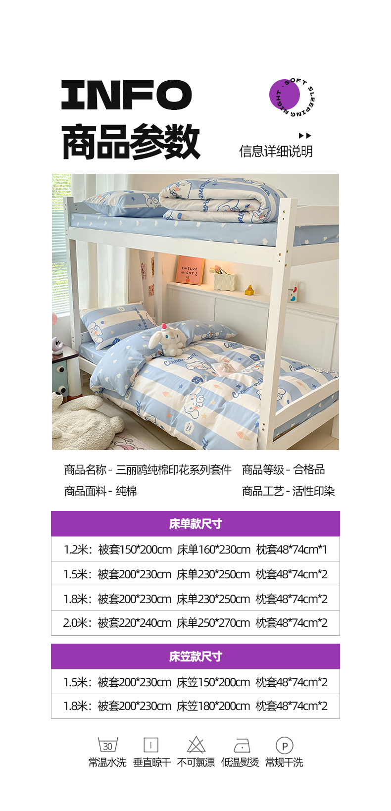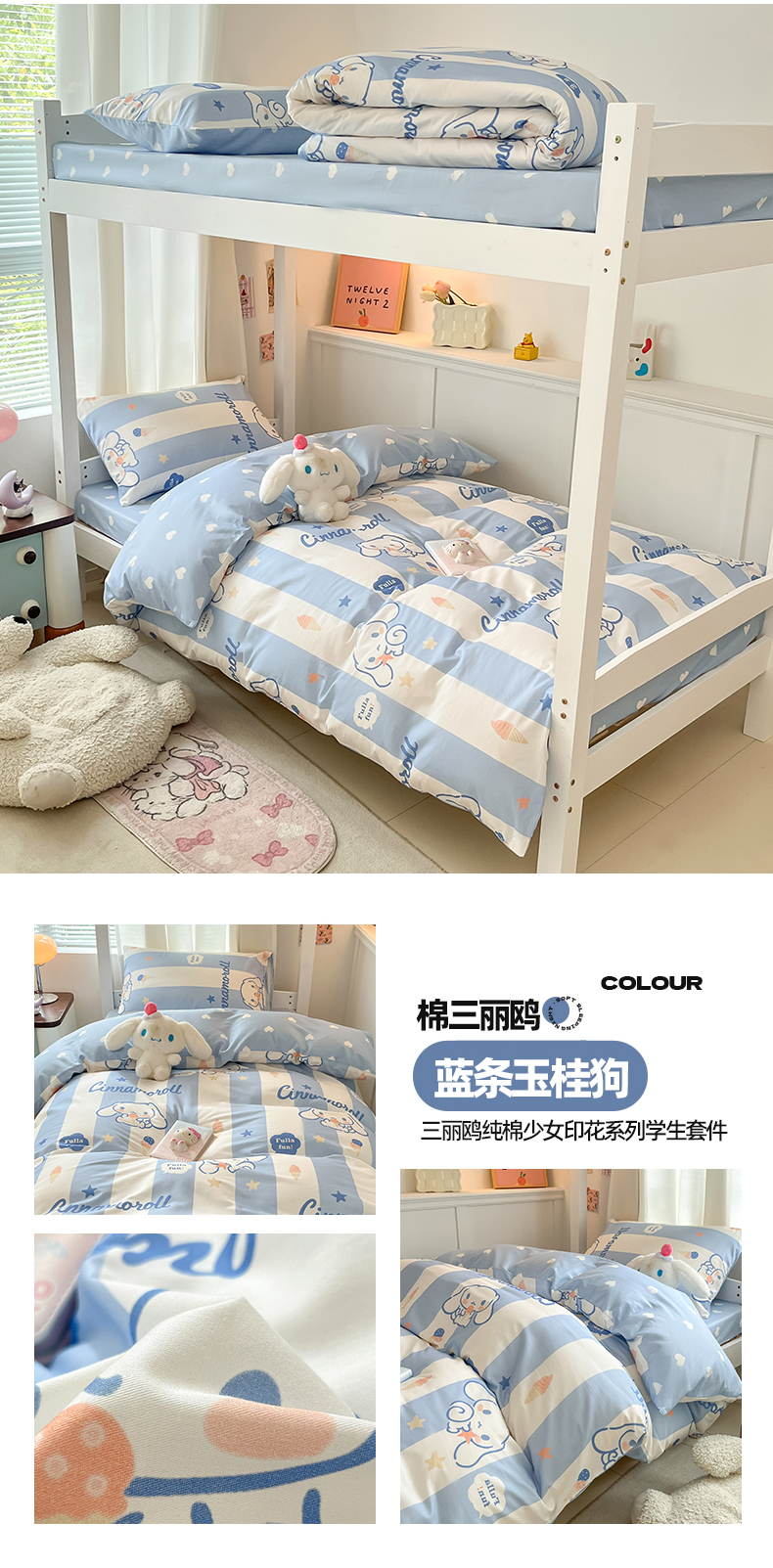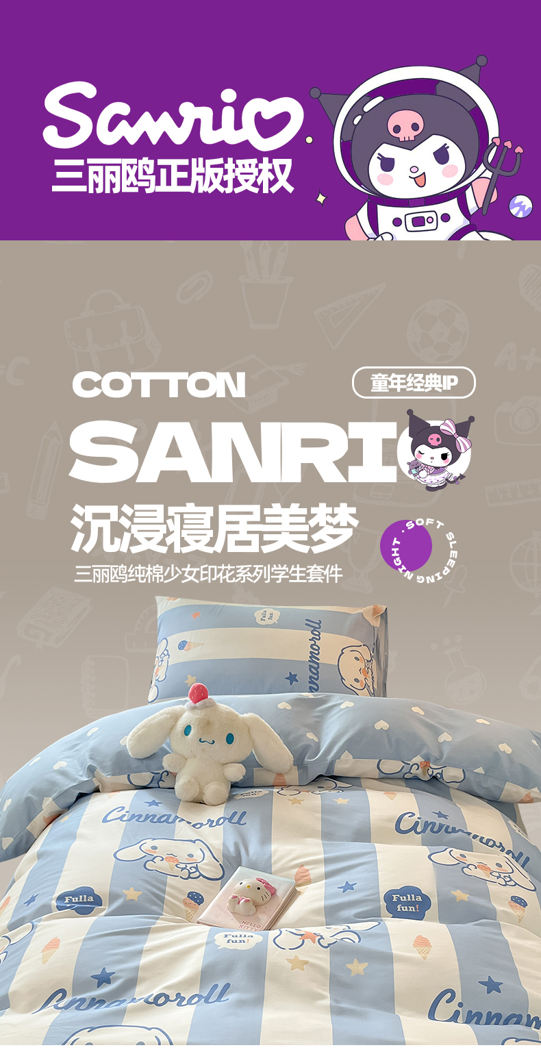 当前位置: 91家纺网 > 商品网购 > 床品套件 > 四件套 > 全棉普通四件套 > 2024新款三丽鸥授权全棉少女印花系列学生三件套四件套 棉三丽鸥-蓝条玉桂狗