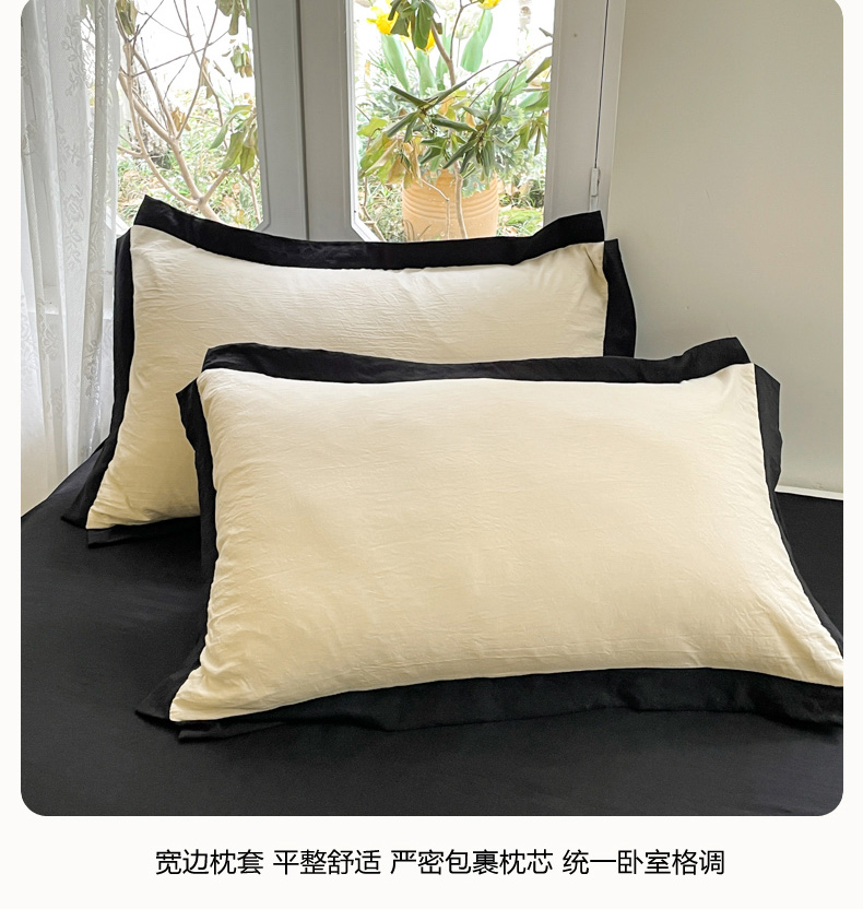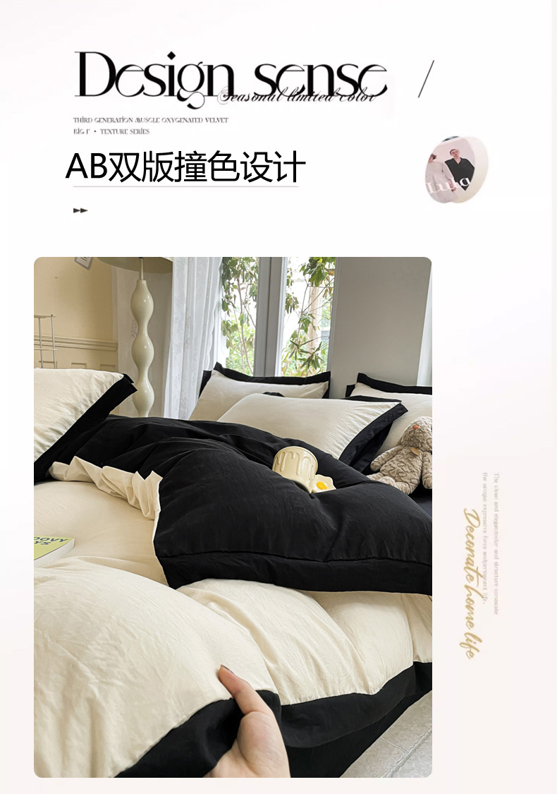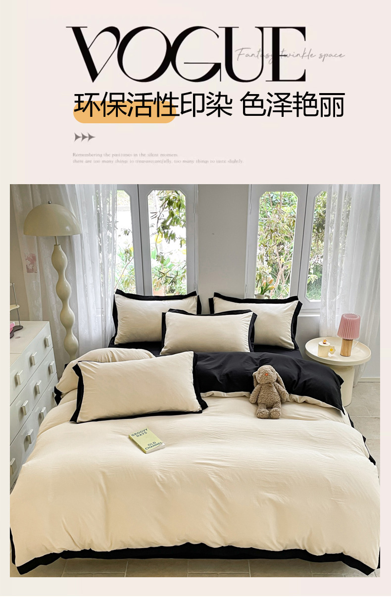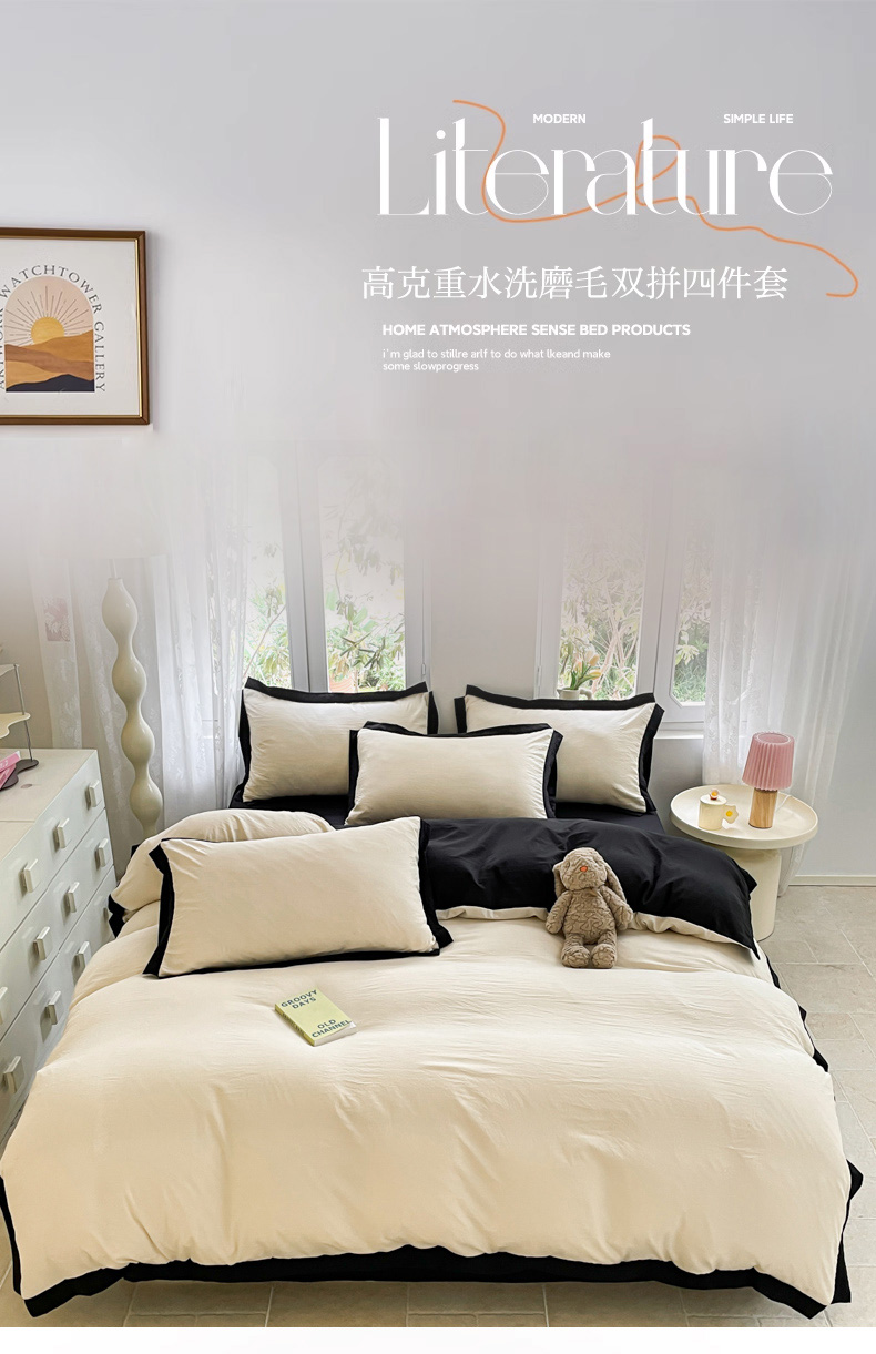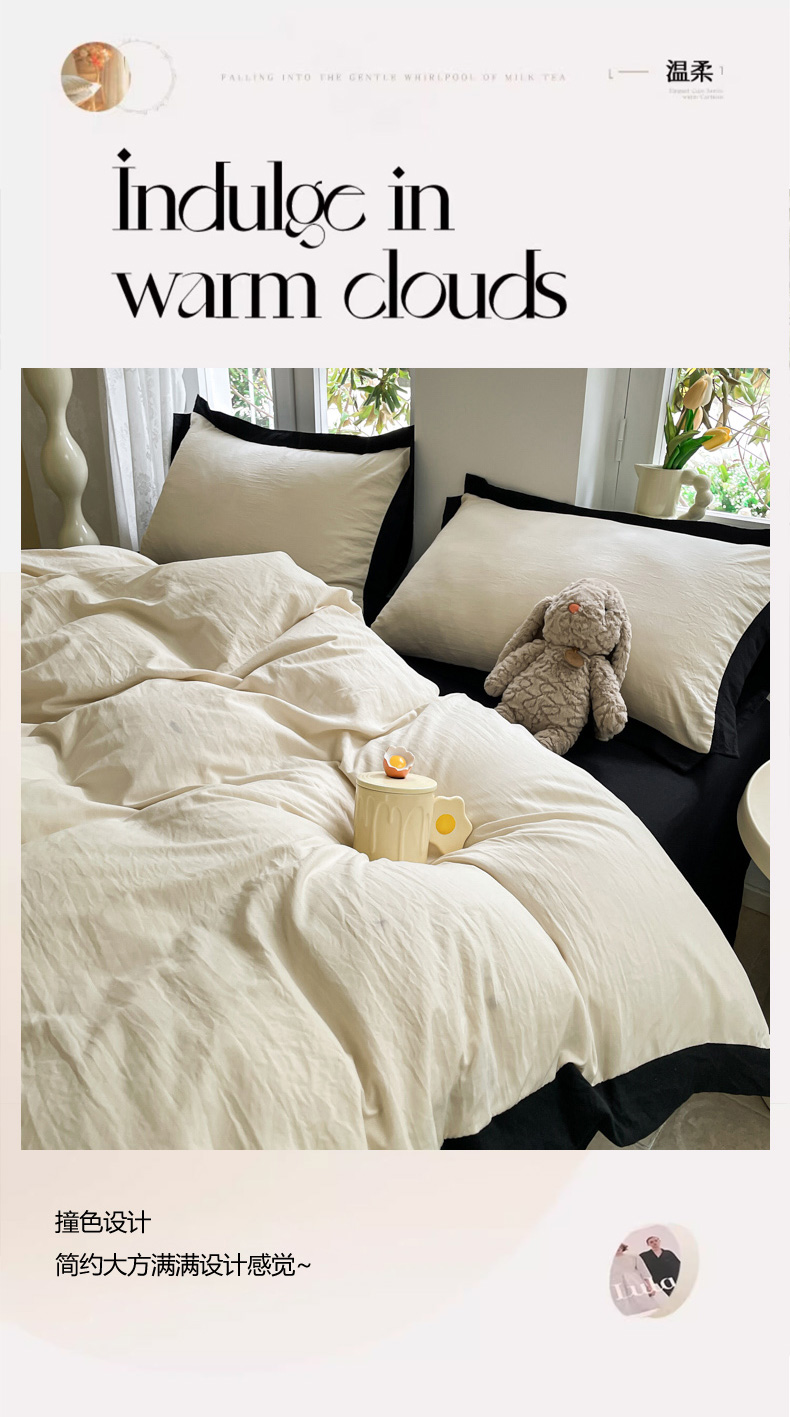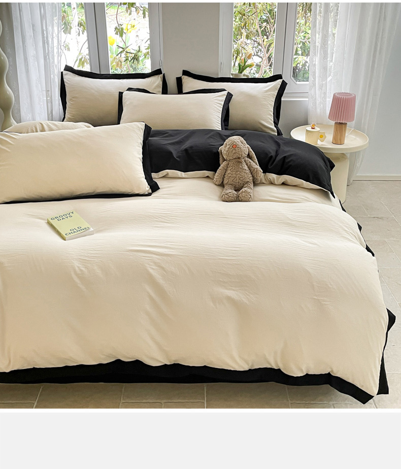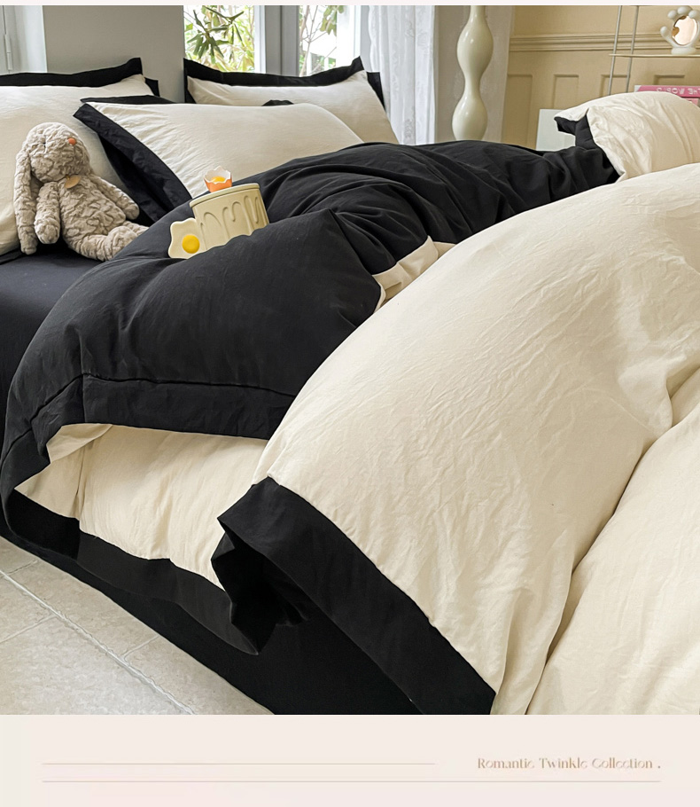 慕澄家纺 2024新款美拉德风双拼四件套 美拉德-米白+黑