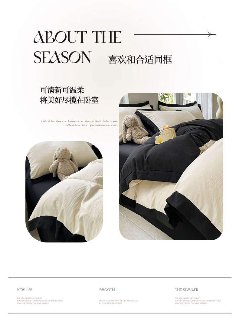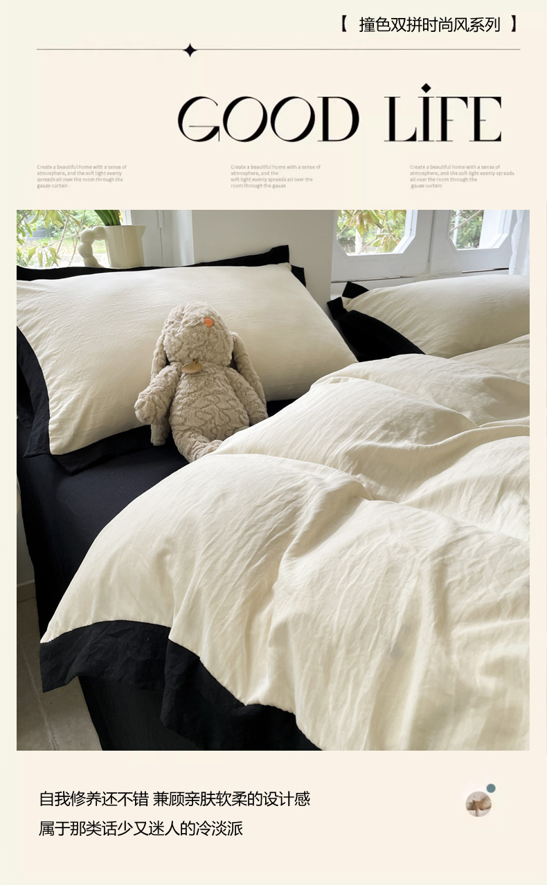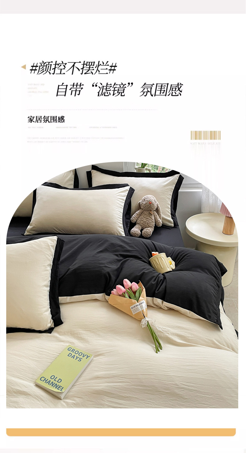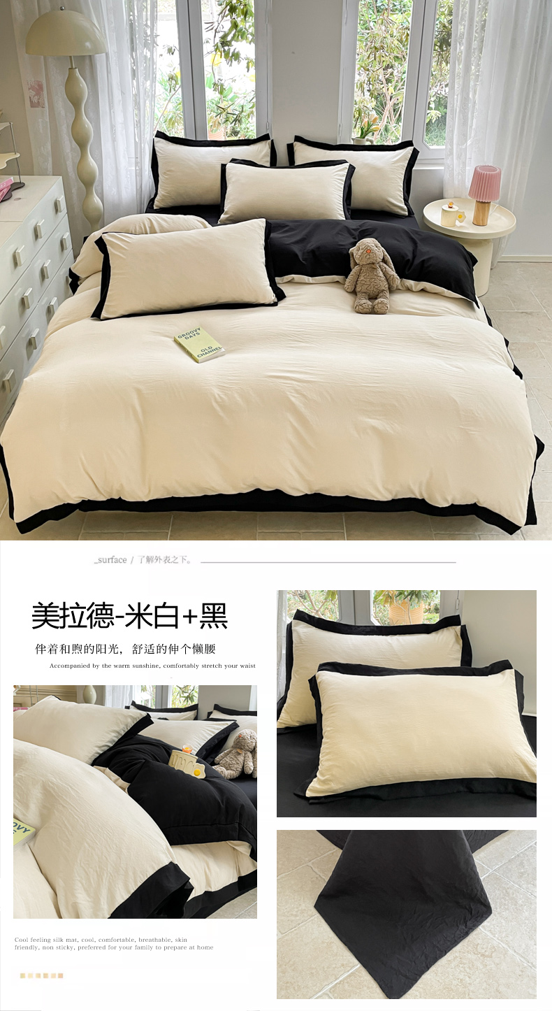 商品名称:慕澄家纺 2024新款美拉德风双拼四件套 美拉德-米白+黑