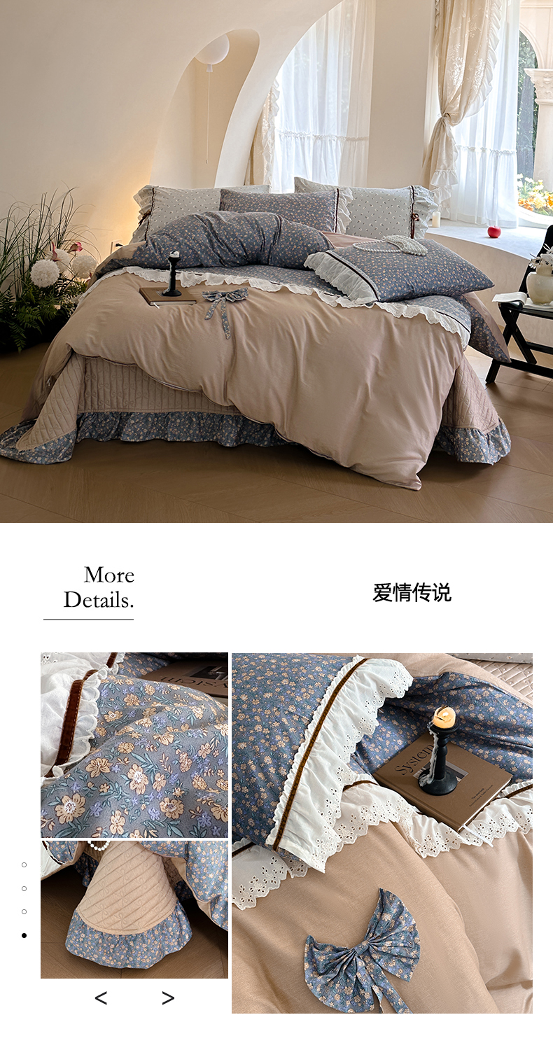 商品名称:热卖蝴蝶结全棉碎花床盖四件套 爱情传说