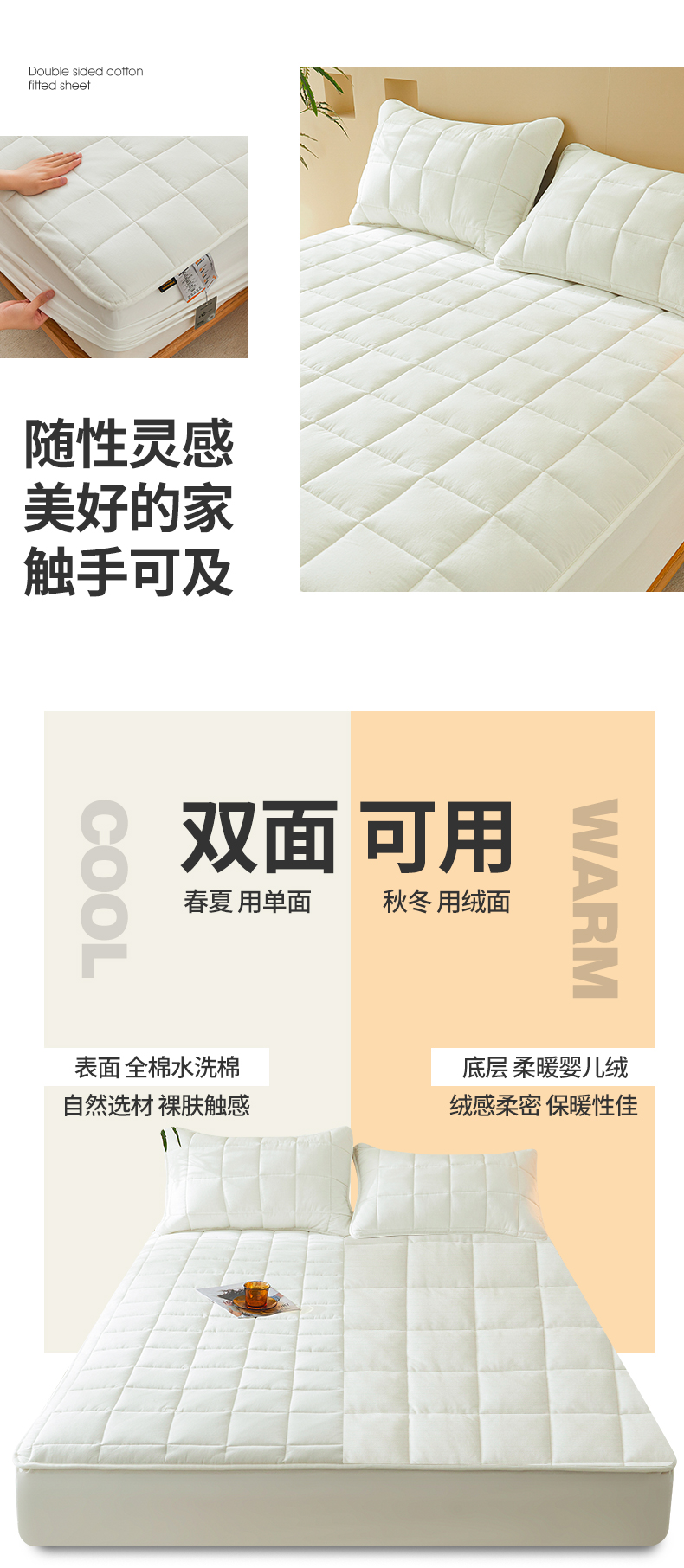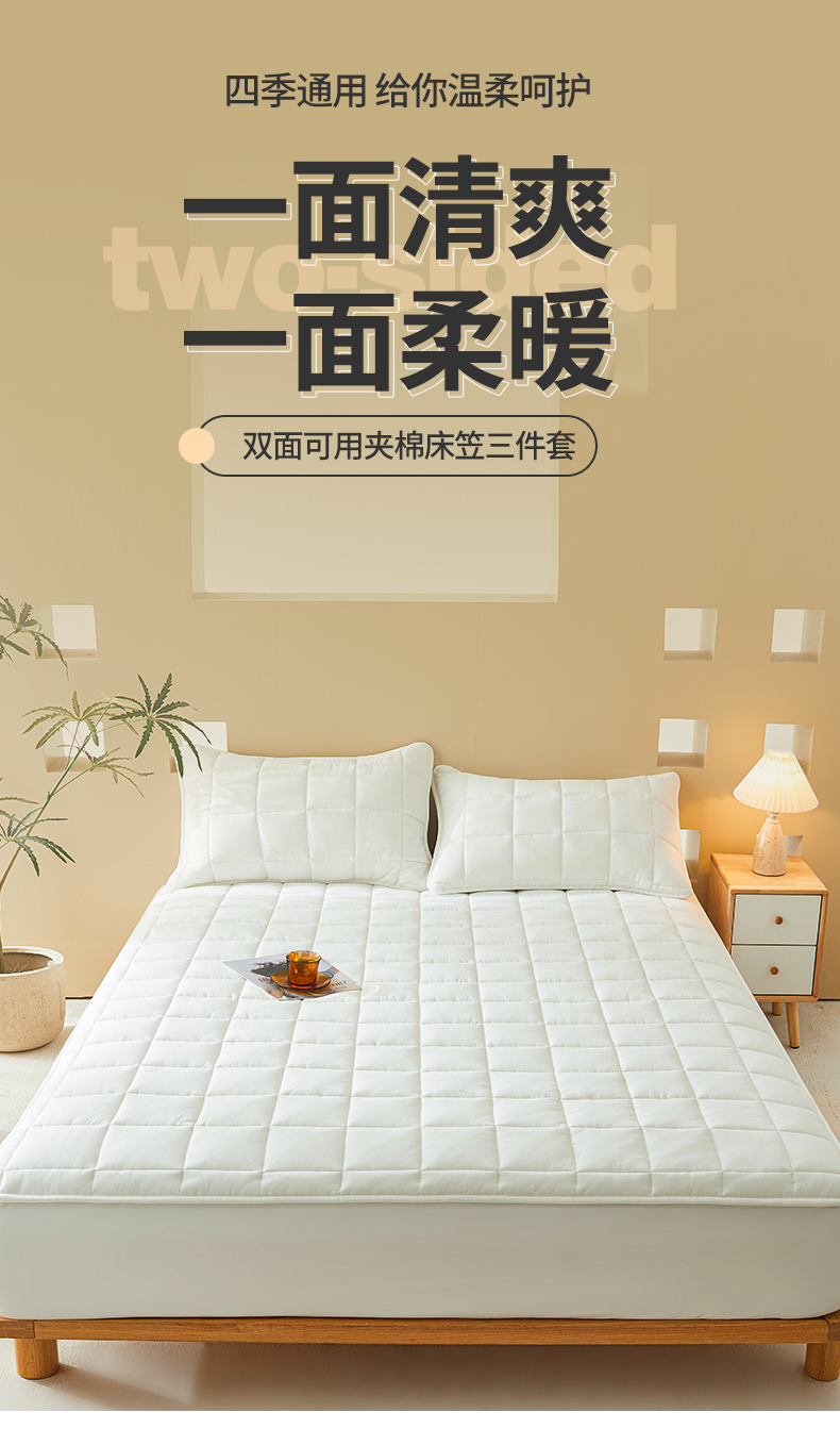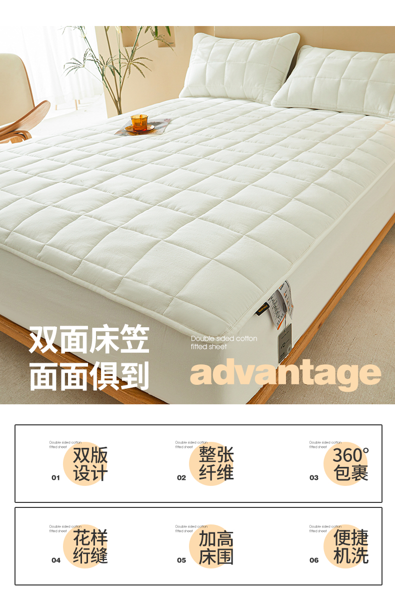 • 91家纺网 家纺一手货源 找家纺 3C 2024新款柔软亲肤全棉双面床笠 雅白
